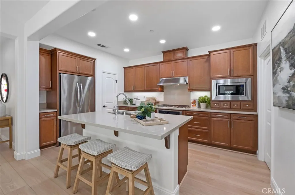Welcome to Gavilan in Sendero, the premier gated 55+ active adult enclave within Rancho Mission Viejo. As the only gated community in RMV, Sendero offers an unmatched blend of privacy, security, and resort-style living. Tucked away at the end of a quiet cul-de-sac, this beautifully appointed 3-bedroom, 2-bathroom Single-Level Home showcases an open-concept design that seamlessly connects the kitchen, dining, and living areas—perfect for both everyday comfort and effortless entertaining. Expansive windows fill the home with natural light, creating a warm, inviting atmosphere. The spacious kitchen serves as the heart of the home featuring generous counter space, modern appliances, a walk-in pantry, and ample cabinetry. A separate laundry room includes a sink and ample counter & cabinet space. The primary suite provides a peaceful retreat with an ensuite bathroom featuring an oversized shower and walk-in closet. Two additional bedrooms provide flexibility for guests, a home office, or hobbies. Freshly painted throughout, the home showcases a bright, refreshed interior complimented by new French oak–style luxury vinyl plank flooring that flows seamlessly from room to room, enhancing the open concept design. Outside, desertscape landscaping delivers a sustainable, low-maintenance, water-efficient outdoor environment perfect for effortless living & entertaining. Just a short stroll from the home, and conveniently located within the gates is The Hacienda, Sendero’s exclusive 55+ clubhouse designed as the social heart of the community featuring a resort-style pool and spa, fitness center, event bar, gathering spaces, studios, lending library, and three lighted bocce courts. Sendero residents also enjoy exclusive access to even more recreational spaces designed specifically for active 55+ living. These include The Outlook, The Getaway, The Perch, The BBQ Barn, and The Club. But that's not all! Residents also enjoy full access to RMV’s all-age amenities such as clubhouses, parks, pools, fitness centers, sports fields, community farms, scenic trails, a dog park, and nearby shopping and dining. With all these world class amenities, Gavilan Sendero residents truly experience the best of both vibrant 55+living and the expansive all-ages lifestyle of Rancho Mission Viejo. Even more appealing, Gavilan Sendero homeowners benefit from one of the lowest Mello-Roos assessments in Rancho Mission Viejo, offering exceptional value within this premier gated 55+ enclave.