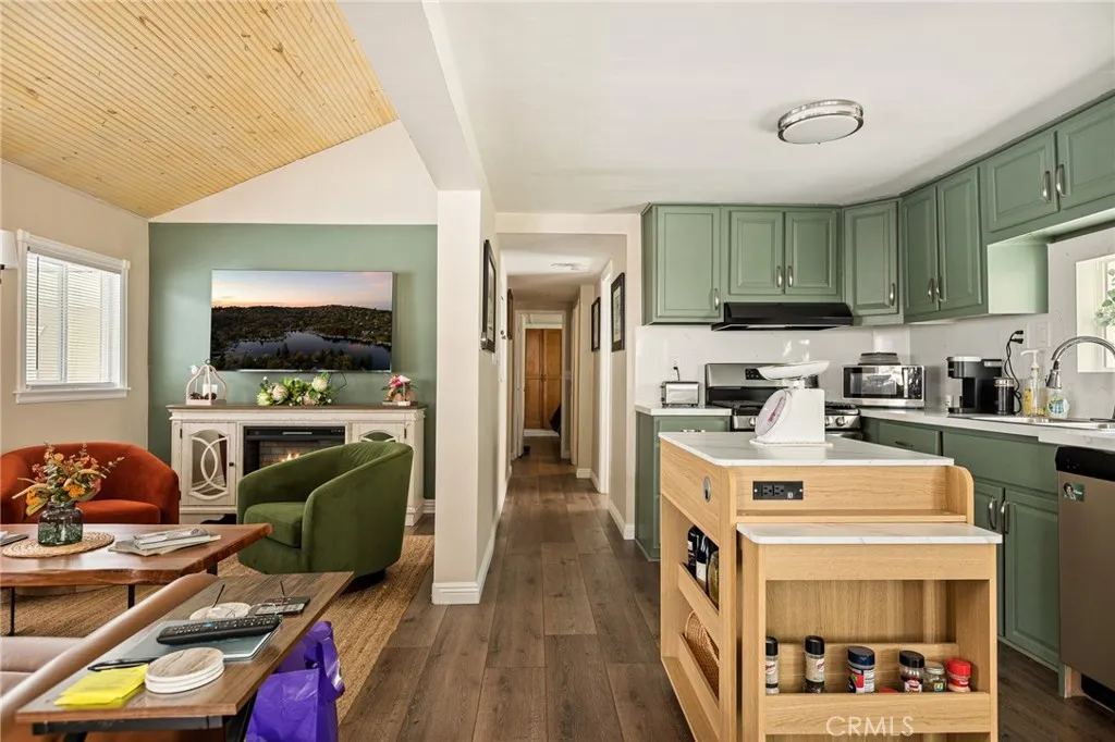 There’s something about living near the water — the way the air feels softer, the mornings quieter, and the evenings stretch just a little longer than everywhere else. Welcome to The Blue Jay Bay Cottage at Lakeside Resort — where life unfolds at lake pace. Tucked into the peaceful cove of Blue Jay Bay, just steps from the private beach and clubhouse, this single-level retreat offers the kind of lakeside living people daydream about — sunrise walks to the shore, barefoot afternoons in the sand, and cozy winter nights with snow falling gently outside. Inside, warmth and character greet you immediately. Wide plank flooring, beadboard detailing, and a natural wood ceiling accent create a timeless mountain cottage feel — inviting, nostalgic, and beautifully curated. The open-concept living and dining areas flow effortlessly into the updated kitchen, where sage green cabinetry, quartz-style countertops, stainless appliances, and a charming island offer both style and functionality. It’s the kind of kitchen where memories are made — cooking together after a day on the water, windows open to the mountain air. The primary suite feels peaceful and private, complemented by a beautifully remodeled bath featuring dual sinks, marble-style countertops, and a walk-in shower. Two additional bedrooms provide space for guests, family, or a quiet retreat. Even the dedicated laundry room has personality, with its brick accent wall and thoughtful storage — proof that every space in this home has intention behind it. The private beach at Lakeside Resort is one of those rare places that feels welcoming to all ages — children playing at the water’s edge, neighbors chatting in Adirondack chairs, friends launching paddleboards at sunset. When the lake is calm, it’s effortless to slide your kayak into the water and drift across the cove, turning an ordinary afternoon into something unforgettable. The clubhouse feels less like a facility and more like a hidden lakeside rec room straight out of a storybook. With its cozy fireplace lounge, full kitchen, shuffleboard, game tables, and expansive deck overlooking the water, it’s an incredible place to host birthday parties, summer gatherings, holiday dinners, or spontaneous evenings with friends. The Blue Jay Bay Cottage isn’t just a home. It’s dock days, porch conversations, barefoot beach walks, and seasons that feel more meaningful by the water. It’s lake life — the way it was meant to be.