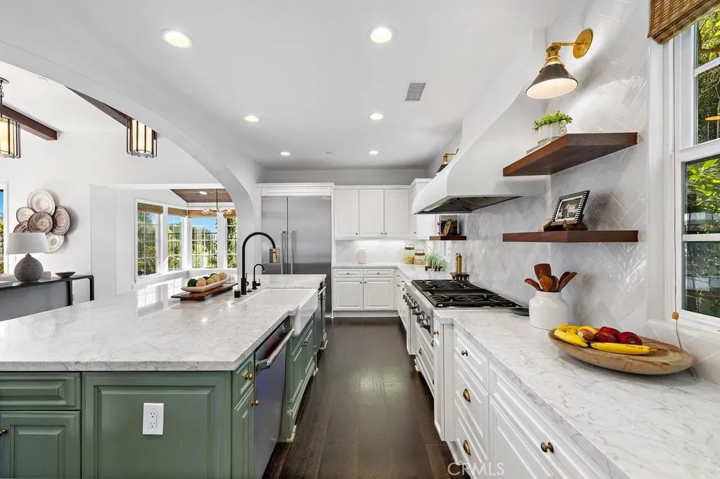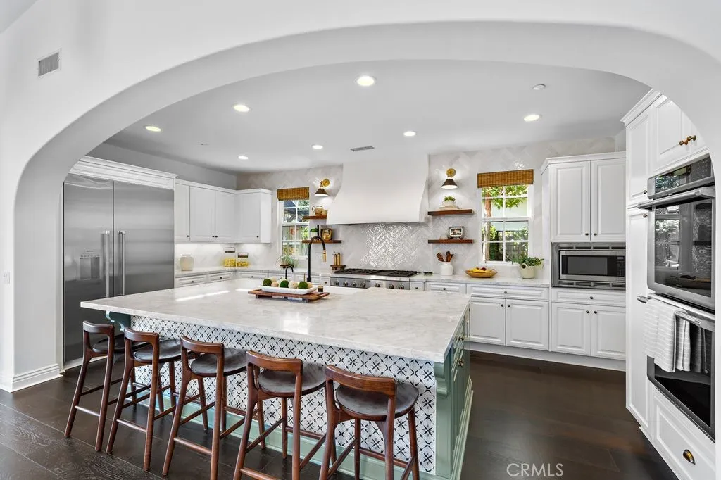 Welcome to 5 Stockmen Rd, a rare luxury estate in the exclusive guard-gated community of Covenant Hills! Tucked away on a private cul-de-sac shared by only five homes, this former model captures sweeping hill and sunset views while offering exceptional privacy. Extensively remodeled and thoughtfully upgraded residence features 5 bedrooms and 4.5 baths! Soaring ceilings and wide-plank hardwood floors lead to a light-filled great room and a stunning chef’s kitchen appointed with Thermador refrigerator & freezer, dual ovens, dual dishwashers, 6-burner range with griddle, wine fridge, and an oversized island designed for entertaining. A dramatic center courtyard creates seamless indoor-outdoor living. The luxurious primary suite offers a spa-inspired remodeled bath, soaking tub, walk-in shower, custom closet, and automated shades. An attached private guest casita provides flexible living for extended stays. The resort-style backyard showcases panoramic views, a Pebble Sheen pool & spa with oversized heater, outdoor shower, Ipe deck, turf, and new putting green. Additional highlights include owned 7.62kW solar, 5-zone HVAC, Culligan soft water system, whole-house filtration, expanded laundry with built-ins and additional refrigeration, custom garage cabinetry, EV charger, and smart home features. Located moments from the exclusive Covenant Hills clubhouse with swimming, tennis, and resort-style amenities, the home also enjoys access to nearby parks and miles of scenic trails. Ladera Ranch’s vibrant shopping, highly rated schools, recreational facilities, beaches, and major freeways are all just minutes away.