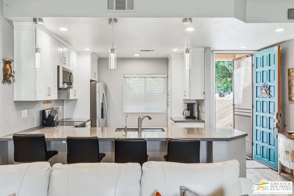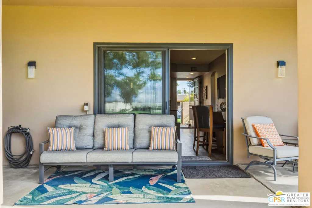 This home has a modern feel with every room relaxing in natural light and serene views. Welcome to 67417 Toltec Court, the Alameda floor plan has 1,212 square feet as a vacation or income property located in the desirable Desert Princess community. Newly landscaped patios enhance the peaceful desert sunsets. Enjoy your season in the sun or your profits with this popular 2 bedroom 2 bath condo. Well cared for by a meticulous owner who extended the land lease to 2069. A 1-car garage has a recently updated door, opener and secure dead bolts. The kitchen includes a convection oven, microwave, and unlike other condos, this one features a dedicated coffee bar with pantry and updated cabinetry with modern countertops and newer appliances for everyday living. There is a restaurant and bar on property and members can access the full service hotel. This quiet community is minutes from everything. The HOA covers roof and exterior maintenance, grounds upkeep, cable/internet, and a 24-hour guard gate, along with resort-style amenities including a 27-hole PGA Championship golf course, fitness center, tennis, bocce ball, pickleball, and access to over 30 pools and spas. Enjoy the full resort lifestyle at Desert Princess today!