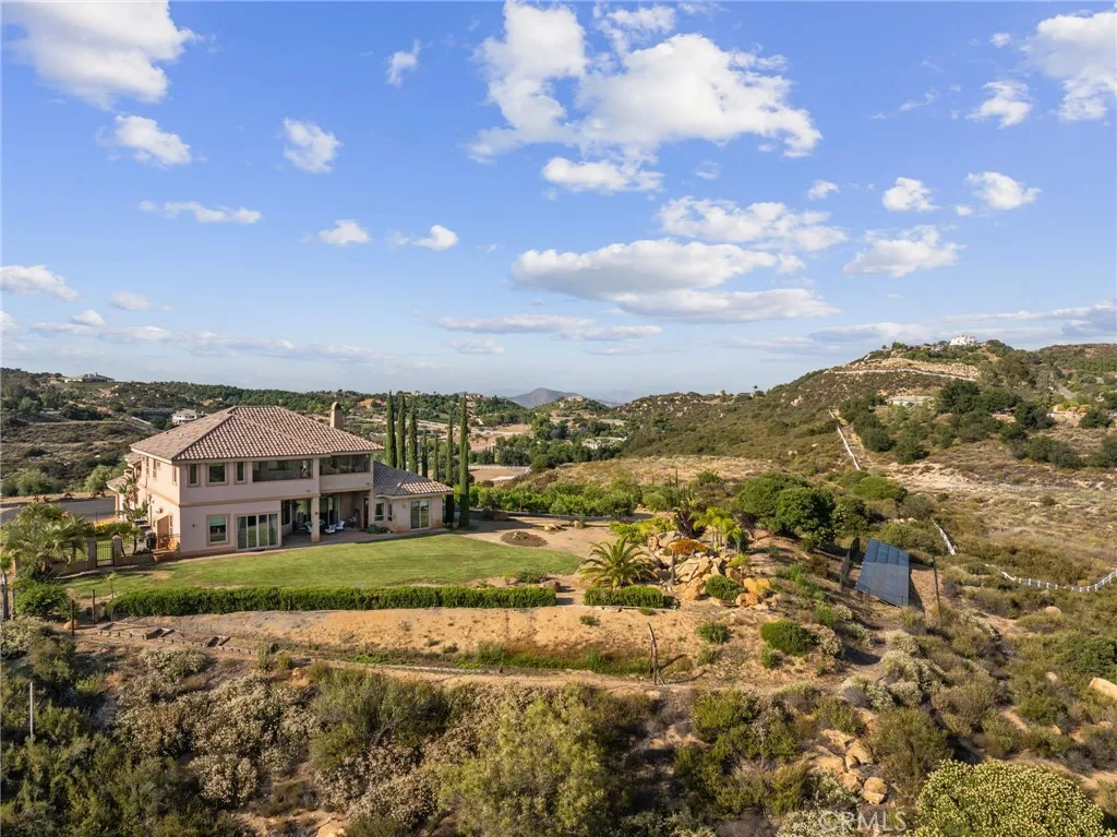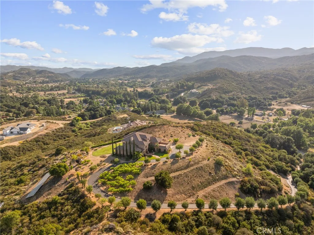 Welcome to your hilltop haven in the heart of La Cresta—where privacy, natural beauty, and sustainable luxury come together on five peaceful, sun-soaked acres. This gated Tuscan-inspired estate feels like a tranquil getaway, offering timeless architecture, modern amenities, and the freedom to live life on your terms. Thoughtfully designed to blend comfort with elegance, this custom-built home lives like a single story, with the spacious primary suite located on the main level. Inside, you’re greeted by a dramatic grand entry, soaring ceilings, solid mahogany doors, and an expansive layout featuring hardwood and travertine floors. A private elevator connects all levels of the home, offering accessibility and ease for all ages and stages of life. The gourmet kitchen features custom granite countertops and opens seamlessly to the living and dining spaces—ideal for entertaining or simply enjoying quiet evenings at home. Cozy up beside one of the three fireplaces, or step out onto one of the 1,500+ square feet of view decks to enjoy the soft breeze and mountain air. Wine lovers will delight in the 500-bottle, temperature-controlled wine cellar, easily accessed from the formal dining area or the garage. And for those who crave connection to the land, this estate is truly a dream come true. A private vineyard of mature Syrah grapes, 50 fruit-bearing olive trees lining the drive, and additional fruit trees throughout the property create a beautiful and productive landscape. Whether you’re tending gardens, growing your own food, or simply enjoying the views, you’ll appreciate the property’s private well and owned solar system—giving you energy efficiency, water independence, and the ability to live comfortably off the grid, without compromising on style or quality. Horse lovers will enjoy the lower portion of the property, which includes a fenced corral, horse stall, tack room, and turnout area, plus direct access to nearby riding trails—saddle up and ride out without ever loading a trailer. There’s also room to add an infinity-edge pool, guest house, workshop, or barn, making this property as versatile as it is beautiful. More than just a home, this is a lifestyle: Peaceful mornings. Endless views. Sunsets over the vineyard. Sustainability. Space to breathe. And the kind of timeless charm that never goes out of style.