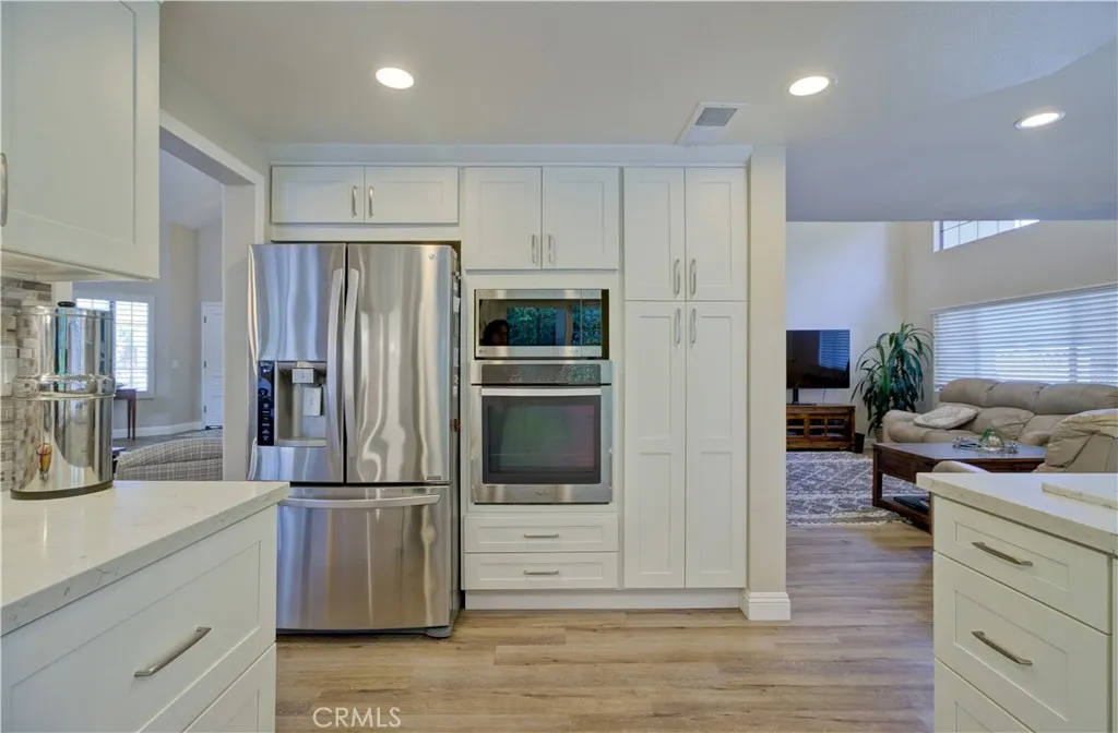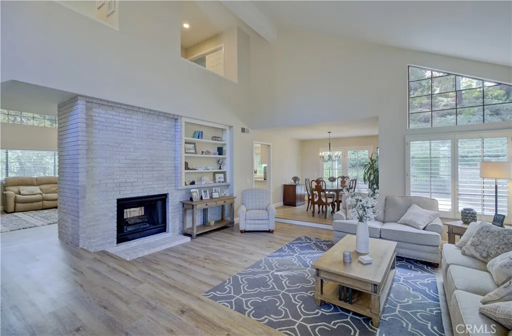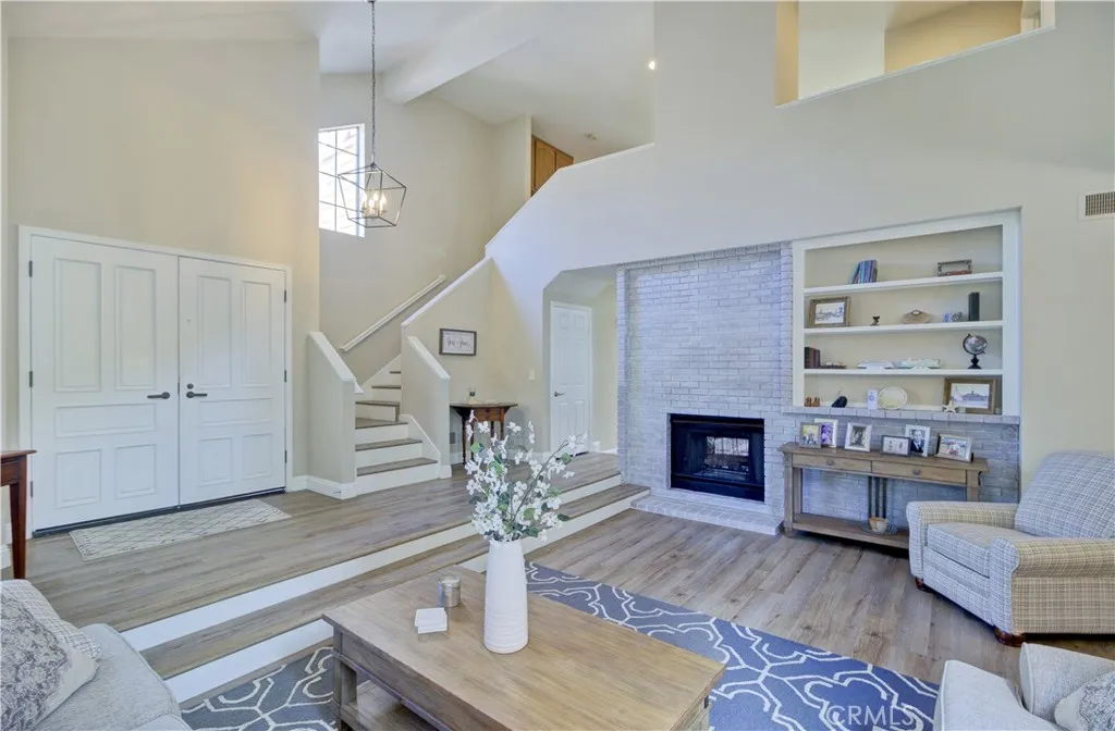 Welcome to Canyon Crest Estates in beautiful Mission Viejo! This beautifully remodeled 3-bedroom home is ideally situated on a private flag lot, offering exceptional privacy, generous parking, and a spacious three-car garage. Inside, you’ll find vinyl plank flooring throughout and thoughtful upgrades at every turn. The kitchen, remodeled in 2019, features quartz countertops, a stainless-steel sink, a 5-burner gas cooktop, and recessed lighting—perfectly designed for both everyday living and entertaining. A stunning whitewashed brick fireplace serves as a striking focal point, opening to both the living and family rooms. The family room also includes its own stylish coffee bar for added charm and convenience. Upstairs, a large bonus room provides flexible space for a media room, home office, or playroom. The primary suite is a true retreat, complete with its own fireplace, recessed lighting, and a private balcony. All bathrooms have been upgraded with quartz countertops for a cohesive, modern feel.