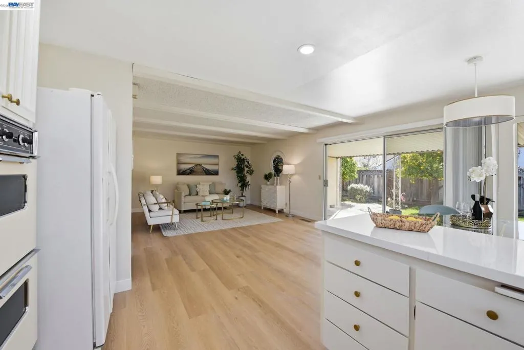 Located at the end of a court in the Brookvale neighborhood, this 3-bedroom, 2-bath home offers practical updates and a convenient location. Features include a spacious living room and new SPC flooring throughout. The kitchen includes recessed lighting, and both the kitchen and bathrooms have freshly painted cabinets and reglazed countertops. The low-maintenance backyard includes a patio cover and mature orange, lemon, and mandarin trees. Close to Alameda Creek Trail and Quarry Lakes Regional Recreation Area, and near Brookvale Elementary School, Thornton Middle School, and American High School. Easy access to Highway 880 and the Dumbarton Bridge, with shopping centers, restaurants and grocery stores nearby."