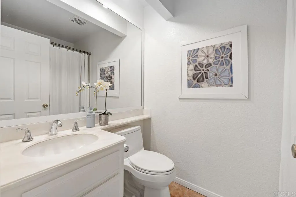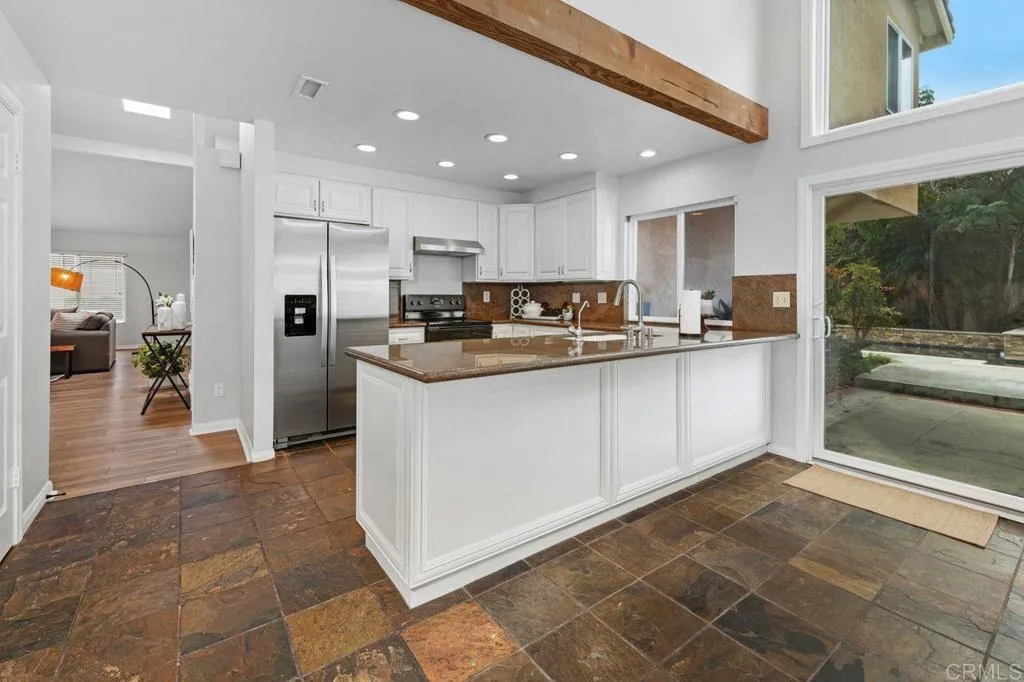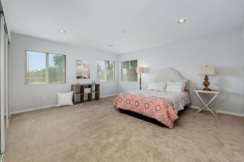 Boasting an expansive 2,492 sq. ft., this 5-bedroom, 3-bath expanded home with sparkling saltwater pool and spa has space for a variety of living options! The flexible floor plan is ideal for multi-generational living, working from home, blended families, rental potential or those who value space! Enter into a huge great room with vaulted ceilings, and natural light, creating an ideal gathering space. The kitchen has granite countertops, counter seating, walk-in pantry, and a large eat-in area or optional family room. The first level also includes two bedrooms, a full bath, plus a large primary bedroom with ensuite bath. Upstairs, the second-story addition provides two oversized bedrooms and a full bath, offering a private floor for guests, kids, or a home office setup. Escape to your own backyard oasis featuring a newer saltwater pool and spa perfect for hosting a summer BBQ, pool party, or soaking under the stars. Other features include a water filtration system, leased solar for both the pool and house, newer windows throughout and luxury vinyl flooring. The Village Creek community offers exclusive access to a pool, tennis courts, and playground. Conveniently location between Flora Vista Elementary and Diegueno Middle Schools, and within the prestigious Encinitas Union High School District. Just a few miles from world-class beaches, vibrant downtown Encinitas, and the North County Coaster station for easy coastal commuting.
