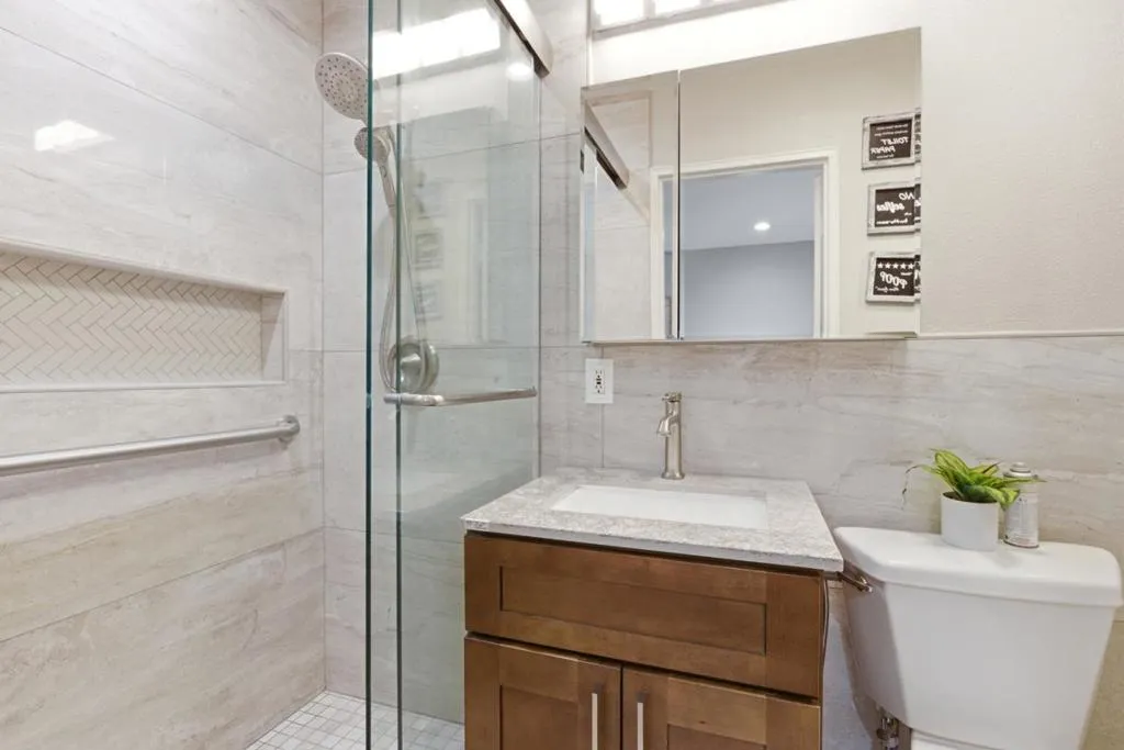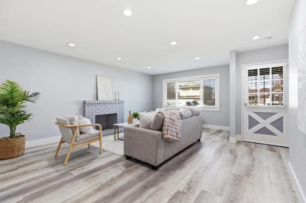 Welcome to 2898 Barkley Avenue a beautifully remodeled 3-bedroom, 2-bath home showcasing modern finishes and a clean, contemporary aesthetic throughout. The home greets you with a bright, open living space featuring wide-plank flooring, recessed lighting, soft gray tones, and a stylish painted brick fireplace that creates a warm yet modern focal point. Large windows invite in abundant natural light, enhancing the airy feel of the space. The bathrooms have been thoughtfully upgraded with sleek, designer touches. One features a striking glass-enclosed walk-in shower with custom tile work and a built-in niche, paired with a modern vanity and illuminated mirror for a high-end spa-like feel. The second bath continues the contemporary theme with elegant tile surround, updated fixtures, and a clean, sophisticated design. Throughout the home, youll find fresh interior paint, updated lighting, and quality finishes that create a cohesive and move-in-ready experience. The attached two-car garage adds everyday convenience, brand new water heater while the backyard space offers room to relax or entertain. Located in a desirable Santa Clara neighborhood close to top-rated schools, shopping, dining, and major commute routes, this home combines modern style, functionality, and prime location.
