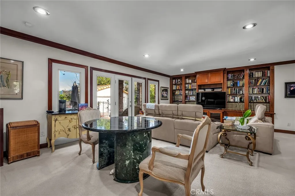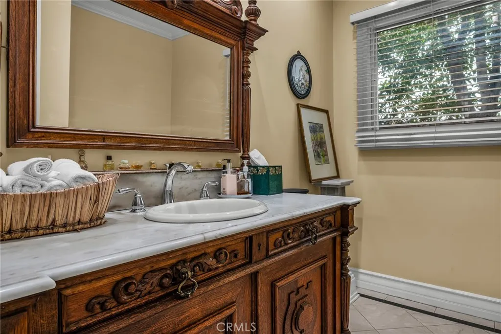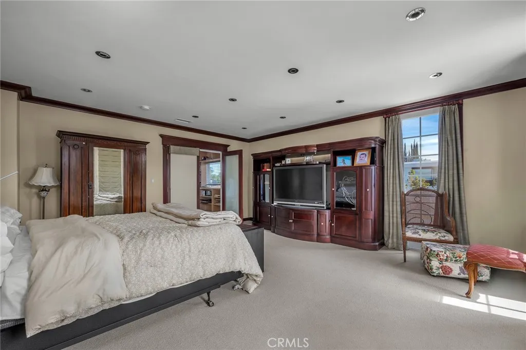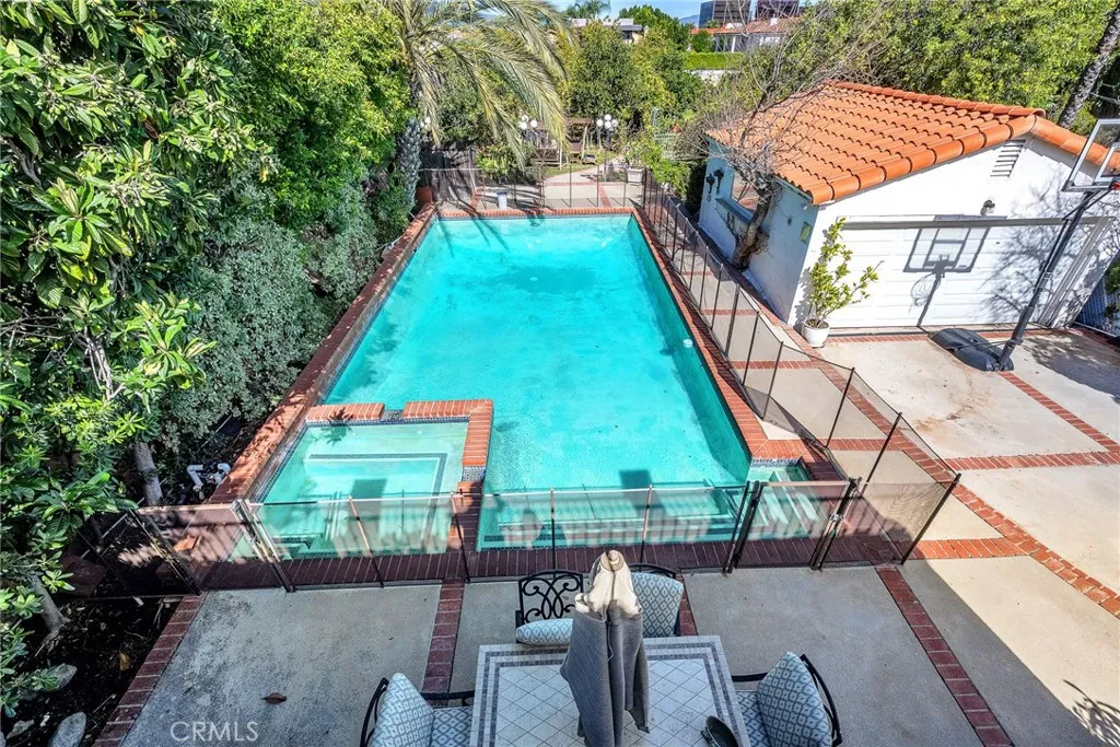 Gracefully set within a lush, garden-like setting offering exceptional privacy and tranquility, this custom-designed residence presents a rare opportunity for its next owner to elevate and personalize a truly special property. Blending classic architectural elegance with modern functionality, the home creates an ideal environment for both everyday living and refined entertaining. The main residence features 5 generously sized bedrooms and 4.5 well-appointed bathrooms. A thoughtfully designed layout includes formal living and dining rooms that provide an elegant setting for hosting. The chef’s kosher kitchen—complete with abundant cabinetry, ample prep space, and a charming breakfast nook—opens seamlessly to an expansive family room with a built-in bar, perfect for more relaxed gatherings. A versatile main-level room, currently utilized as an office, that doubles as an additional bedroom to accommodate a variety of lifestyle needs. Upstairs, four private bedroom suites offer comfort and privacy, including a primary suite featuring an oversized walk-in closet, a private balcony overlooking the grounds, and a spacious bathroom with a soaking tub and walk-in shower. Two secondary bedrooms include sitting areas and walk-in closets, ideal for extended family, guests, or flexible use, while an additional en-suite bedroom provides a welcoming retreat for visitors. The exterior grounds evoke the charm of a private estate. A picturesque brick façade accented with ivy sets the tone, while the expansive pool and spa create a resort-like atmosphere. Beyond the detached two-car garage, the property unfolds into a park-like setting with mature fruit trees and vibrant landscaping, offering a truly unique outdoor experience. At the rear of the property, a 1430-square-foot guest house provides exceptional versatility, complete with a full kitchen, living room, two bedrooms, and 2.5 bathrooms, ideal for extended family, guests, or potential income. This exceptional estate represents a rare blend of scale, character, and opportunity—offering a lifestyle defined by privacy, elegance, and enduring appeal.