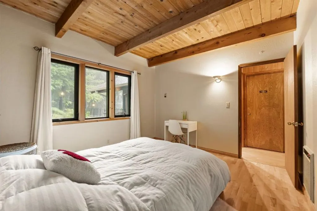 Tucked in the tranquil hills above Los Gatos, this beautifully upgraded retreat offers a rare mix of nature, comfort, and convenience. Set on 2.78 acres with stunning views, this three bedroom, two and a half bath home features an open floor plan with vaulted ceilings, hardwood floors, and floor to ceiling windows. Recent upgrades include, owned solar panels, energy efficient mini splits in every room, a newer roof, and remodeled bathrooms with heated floors. The home also features two fireplaces, one wood-burning and one newly installed propane, offering both charm and convenience in cooler months. A versatile bonus room with private entrance offers space for a studio, guest suite, or home office. Entertain on the expansive deck or relax in the hot tub under the stars. A two-car garage with 220V-powered workshop and a newly paved driveway complete the property. Zoning allows horses and chickens, with space to garden. Located just nine miles from downtown Saratoga and fourteen miles from downtown Los Gatos, Close to Castle Rock State Park, and top-rated schools. Move in ready with modern comfort in a peaceful setting.