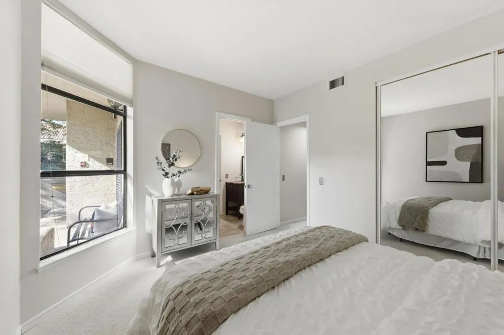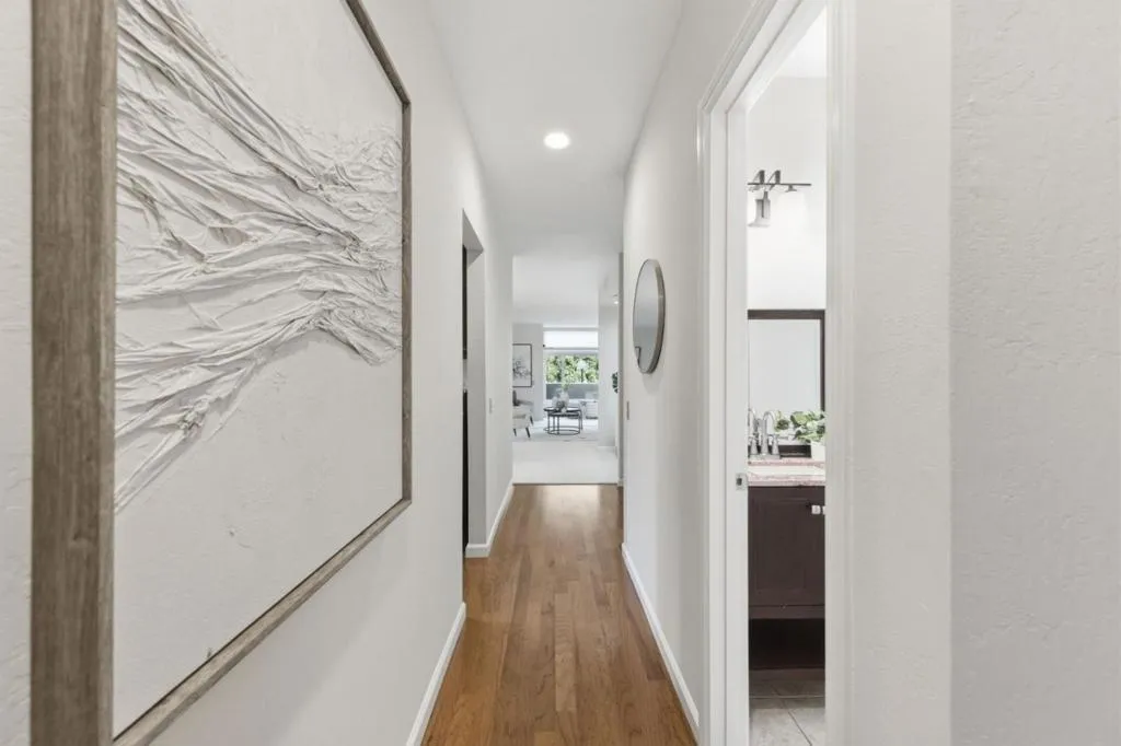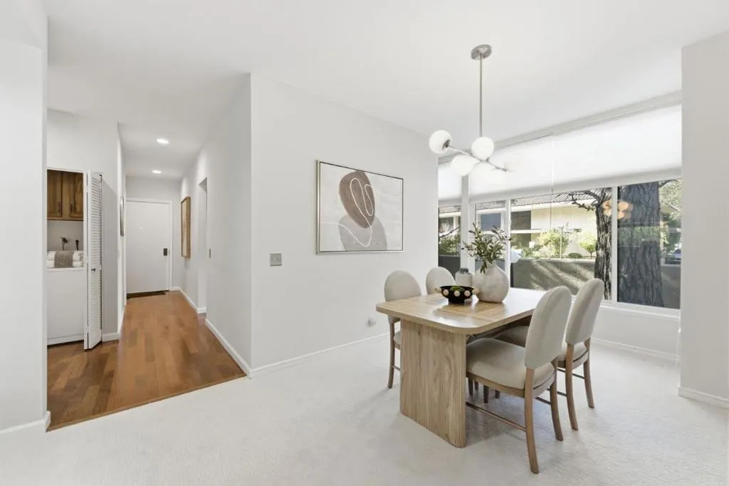 Situated in the heart of San Mateo, 11 Hayward Ave #1009 offers the perfect balance of comfort, convenience, and style. The inviting living room features a cozy wood-burning fireplace and walls of glass that open to your own enclosed patio ideal for morning coffee or a private garden retreat. The open dining area flows seamlessly into a well-appointed kitchen with dark wood cabinetry, granite countertops, modern appliances, and generous storage. The spacious primary suite offers a double-sink granite vanity, stall shower, and soaking tub designed for relaxation. A versatile second bedroom is perfect for guests, a home office, or fitness space, complemented by an updated full hall bath. Additional highlights include a dedicated laundry closet with full-size machines, extra storage, new carpet in the living areas, and rich wood flooring at the entry. The community features a resort-style pool, spa, and expansive sundeck. Just minutes from Central Park, vibrant downtown shops and dining, and Caltrain, with easy access to major commute routes, this home delivers comfort and connection in one exceptional location