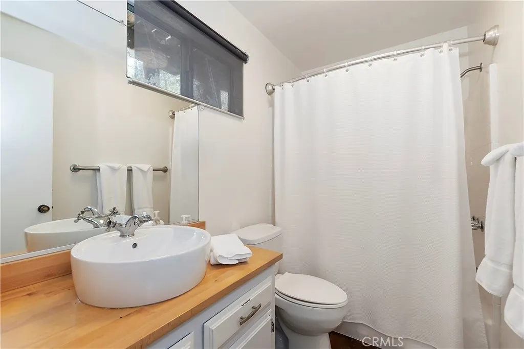 Creekside Sanctuary! This location is magical, situated above a year round running creek with a wonderful sense of privacy. Surrounded by stunning mature trees, you are immersed in the forest with a distant peek of Lake Arrowhead. This property has been thoughtfully upgraded and beautifully maintained. Easy floorplan enters into the Great Room with Floor to Ceiling Rock Fireplace wrapping around to the Dining Area which opens to the Lovely Kitchen. There is a conveniently located 1/2 bath near the entry. Downstairs are two spacious Bedrooms, plus a crisp and clean full bathroom. One Bedroom features a private deck. The lowest level is versatile with a large picture window that brings nature right in - this space could be a 3rd Bedroom, Game Room, Office - or whatever you need! Laundry is located on this level. Offering a more relaxing pace of life - the sounds of the creek below fill the home and soothe the soul. Enjoy peaceful mornings and sensational star filled nights - every moment here is remarkable - come breath with the forest and enjoy the natural soundscape of the flowing creek. Flat easy off street parking with just a couple steps to the front door. Equipped with A/C for those hot days and Nest Thermostat for constant climate control. Elevate your dreams and treat yourself to this amazing opportunity! The Mountains are Calling and the Creek is Flowing, the Atmosphere is Perfect, Come on In!