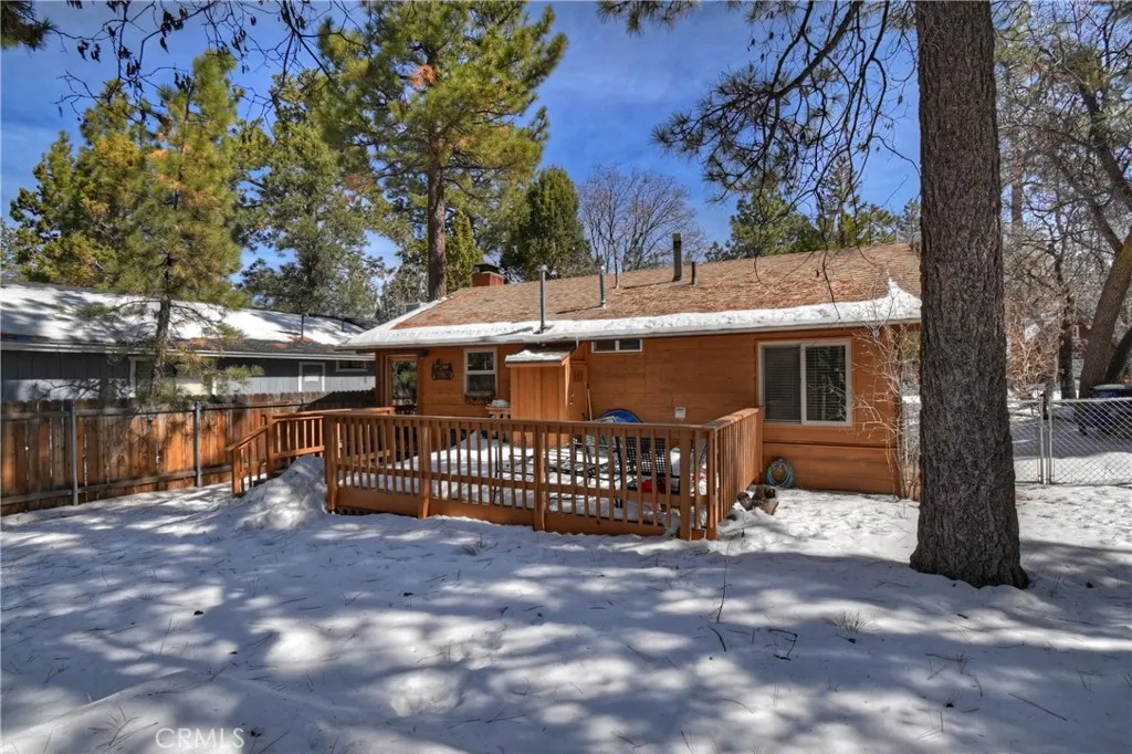 Cute as a button! When you think of a clean, cozy mountain cabin getaway, this one checks ALL the boxes. This charming 2-bedroom, 1-bath home offers 744 square feet of pure mountain character and thoughtful custom touches throughout, and it sits on a spacious 5,000 square foot lot — giving you room to breathe and enjoy true mountain living. From the moment you step inside, you’re welcomed by warm vaulted T&G ceilings, beautiful granite countertops, and rich hickory cabinetry that perfectly complement the cabin aesthetic. The space feels inviting, comfortable, and effortlessly charming. Meticulously cared for, this home is ideal as a full-time residence or the perfect weekend retreat. Think Big Bear’s version of “The Holiday” cabin — intimate, storybook charm with thoughtful touches. Outside, the fully fenced yard is perfect for your furry friends, and the landscaped backyard provides a spacious setting to relax, entertain, or simply enjoy the fresh mountain air. A storage shed offers extra space for tools, toys, and seasonal gear. This hidden gem truly must be seen in person to be fully appreciated.