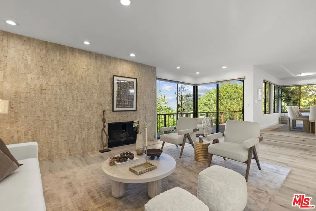 Commanding sweeping hillside views from its prime location south of Ventura Boulevard, this private mid-century retreat in Sherman Oaks offers elevated California living at its finest. Spanning approximately 2,500 square feet across two levels, the home features 3 bedrooms and 3 bathrooms with a floor plan designed for both comfortable daily living and effortless entertaining.Natural light fills the open-concept living spaces, where a striking fireplace anchors the main living room. Sliding doors open to a full-length view deck, creating seamless indoor-outdoor flow and a spectacular backdrop for sunset evenings and weekend gatherings. The dining room sits just off the kitchen, framed by windows and scenic outlooks that make every meal feel special.The kitchen is appointed with stainless steel appliances, generous counter space, and a bright breakfast area that welcomes the morning sun. A bedroom on the main level offers flexibility for guests, a home office, or additional living space. Downstairs, the private primary suite provides a tranquil retreat with sweeping views and an en-suite bath. An additional bedroom and versatile bonus room offer options for a media room, gym, or creative workspace. Outdoors, mature landscaping surrounds a peaceful patio ideal for relaxing or entertaining. The grounds provide room to further enhance the outdoor lifestyle, including potential space for a pool. A rare opportunity to own a view home that blends mid-century character, privacy, and convenience in one of Sherman Oaks' most desirable hillside neighborhoods just moments from dining, shopping, and commuter access.