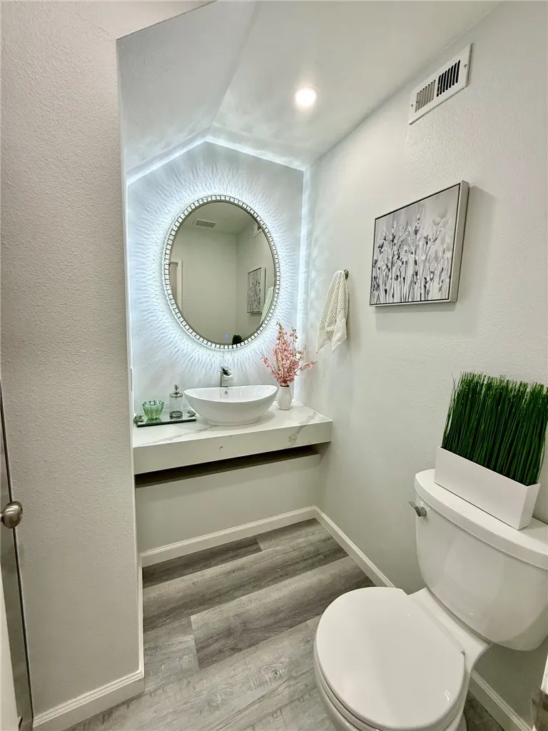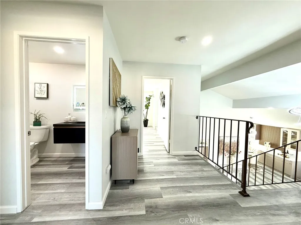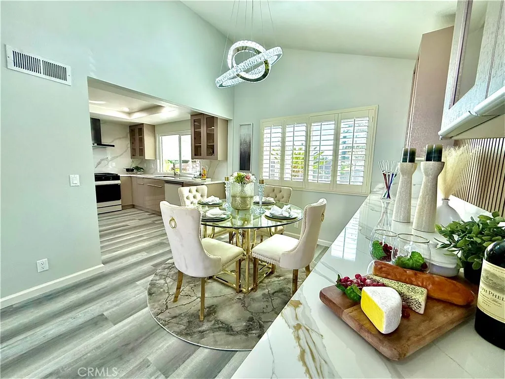 Welcome to this meticulously remodeled, two-level entertainer’s dream home, perfectly timed for summer enjoyment! Boasting over 2,000 square feet of elegant living space on a generous 6,849-square-foot lot, this 4-bedroom, 3-bathroom residence seamlessly blends modern sophistication with everyday convenience. A highly desirable main-floor bedroom and bath make it ideal for guests or multi-generational living. An impressive, oversized chocolate-cafe wood entry door with a decorative glass sidelight welcomes you into a sun-drenched interior, highlighted by a modern, geometric tiered crystal chandelier. The inviting living room features cathedral ceilings and recessed lighting, flowing naturally into a formal dining area. Neutral waterproof vinyl flooring runs throughout the entire home. The upgraded chef’s kitchen showcases quartz countertops and comes fully equipped with a five-burner cooktop, range hood, dishwasher, and a premium 3-door Samsung Bespoke refrigerator with a beverage center. The cozy family room is anchored by a romantic fireplace, tastefully modernized with acoustic slat wall panels and integrated LED lighting. Sliding glass doors create an effortless indoor-outdoor flow to your private backyard oasis, featuring a sparkling pool with fountain and heated spa. Upstairs, the spacious primary suite includes a walk-in closet and a double-sink vanity with a frameless LED mirror. Two additional bedrooms are well-appointed, sharing a modern hallway bath. Additional features include a durable tile roof, covered RV parking, a two-car garage with direct interior access and laundry hookups. Situated in the prestigious ABC Unified School District, this home is just minutes away from the premier Los Cerritos Center with specialty stores and popular restaurants, offering convenient access to all major SoCal freeways. Make your dream a reality with this stunning turn-key home!