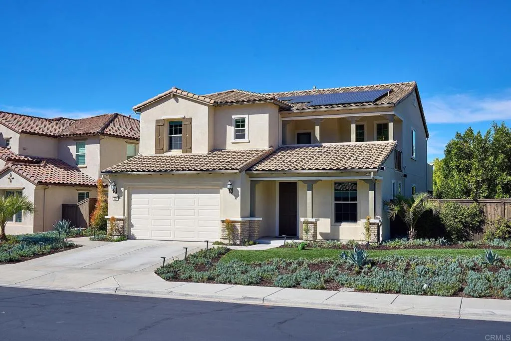 Discover this exquisite, highly upgraded residence in the prestigious gated community of Laurel Pointe in Vista. Ideally situated in a prime location, this exceptional home offers 5 BR, 4.5 BA, a private low-maintenance backyard, a resort-style pool & spa, owned solar, & breathtaking views. The thoughtfully designed floor plan features a main-level primary suite, dedicated office, additional ensuite bedroom, & a convenient downstairs laundry room w/washer & dryer. Open-concept living & dining areas provide seamless flow & an inviting atmosphere. The gourmet kitchen showcases upgraded cabinetry, a striking marble island w/double waterfall edge, quartz countertops & backsplash, Bosch appliances w/double oven, a Samsung smart refrigerator, & a walk-in pantry. Upstairs offers a flexible layout including a spacious game room, loft, ensuite bedroom w/walk-in closet, & two additional bedrooms w/a Jack-and-Jill bath, making this home ideal for multigenerational living or growing households. Two expansive north- & south-facing balconies provide relaxing outdoor spaces w/scenic mountain views. The professionally designed backyard features a three-year-new pool & spa w/pebble quartz & sparkling abalone shell finish, automatic safety cover, & both solar and gas heating. Non-slip wood-look tile extends from the pool deck into the covered patio for cohesive indoor-outdoor living. Additional highlights include new interior paint throughout, COREtec luxury plank flooring, 14 owned solar panels, & an EV charging outlet. The gated community offers private walking paths overlooking the Antique Steam Engine Museum & a children’s play area. Conveniently located near schools, shopping, dining, parks, & easy access to the 76 & 78 freeways, this exceptional home delivers comfort, style, & modern amenities in one of Vista’s most desirable gated communities, just 10 miles from the beach. A rare opportunity not to be missed.