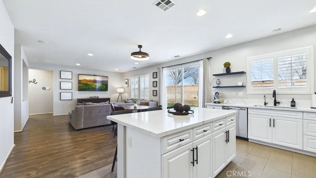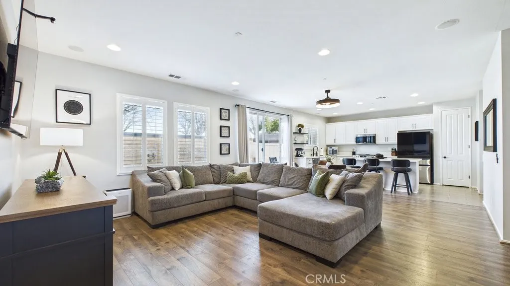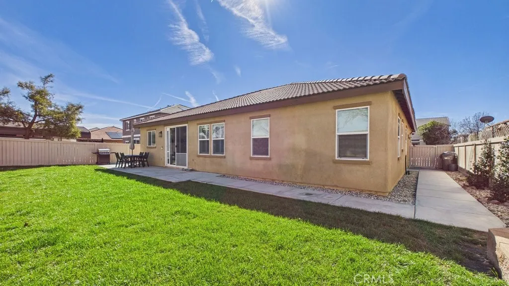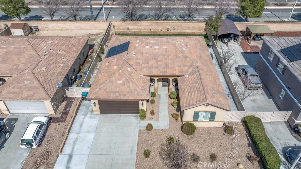 Welcome to this super sharp, beautifully upgraded 2012-built single-story home located in a true pride-of-ownership neighborhood! Featuring an open floorplan with a formal dining room, this home offers the perfect blend of comfortable everyday living and great entertaining space. With approximately $40,000 in recent improvements, this move-in-ready property is packed with updates you're going to love. The open and bright kitchen features updated quartz surfaces on the island and counters, modern appliances, and new cabinet hardware, creating a fresh, stylish space that flows seamlessly into the main living areas. Recent upgrades continue throughout the home, including new flooring in both the primary and guest bathrooms, updated interior lighting fixtures, and smart light switches in the living room and primary bedroom for added convenience and efficiency. Outside, the improvements really shine -- enjoy a backyard with newly poured concrete and a retaining wall, plus extended driveway cement for extra parking or easier access. The home is also future-ready with an EV charging hookup added at the electrical panel, and updated exterior lighting enhances both curb appeal and functionality. Even better, an owned solar system is included in the purchase, helping reduce energy costs while adding long-term value. This is the kind of home that feels cared for the moment you arrive -- clean, upgraded, energy-efficient, and ready for its next owner to enjoy!