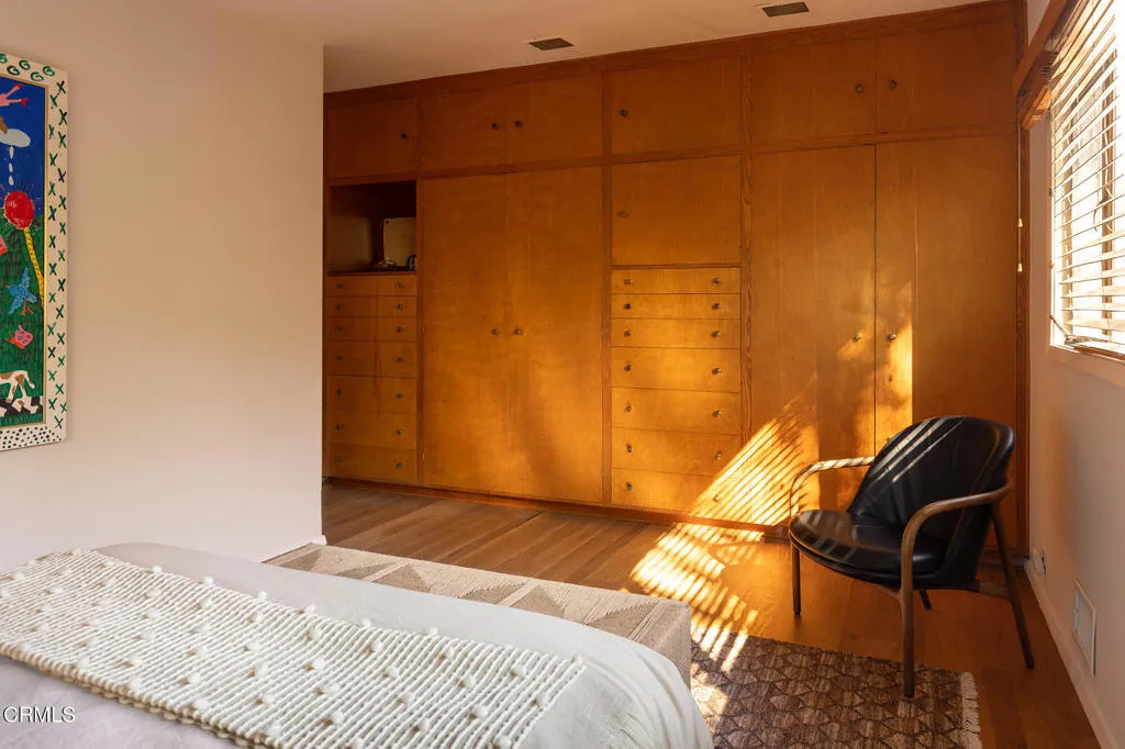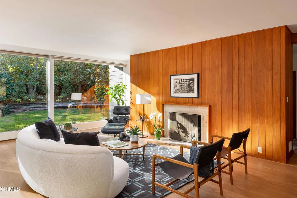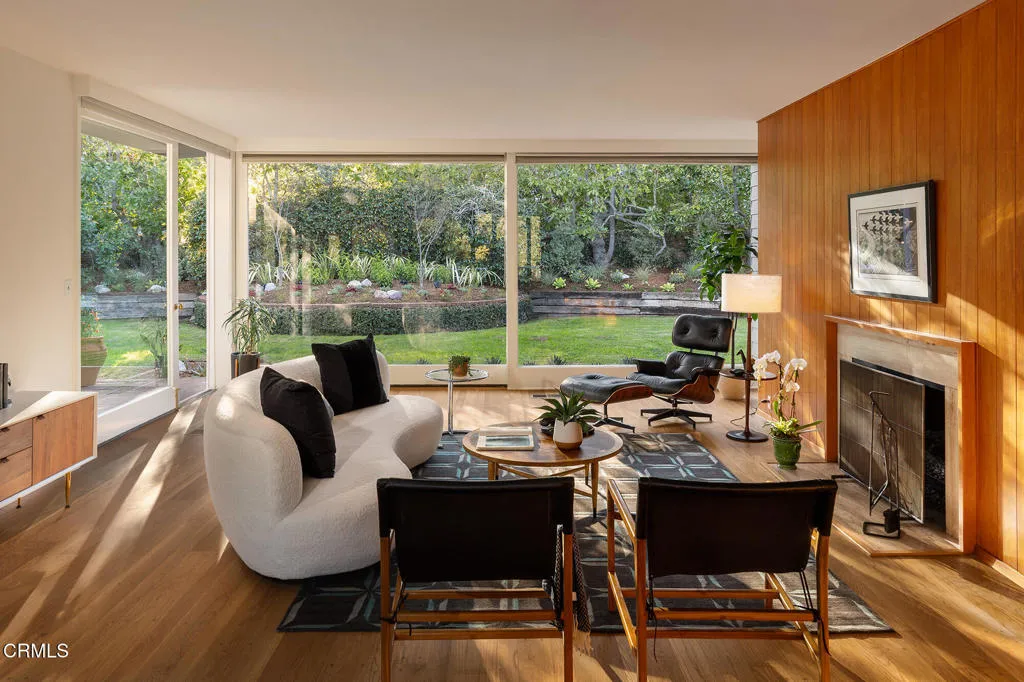 The Stromberger Residence, 1948, Henry Eggers, FAIA., Garret Eckbo, FASLA, Hahn and Hoffman, Landscape Architects. Described by the Pasadena Star-News in 1953 as 'a contemporary home with a quota of indoor-outdoor living,' the Stromberger residence remains a compelling study in postwar California modernism.Located on the west side of the Arroyo, the property occupies a mostly flat, nearly three-quarters-of-an-acre parcel across two parcels -- a rare landholding in an increasingly urbanized setting. Settled by Midwestern farming families who regarded the Linda Vista area of Pasadena as paradise, the neighborhood still retains a sense of that rural sensibility: broad skies, mature oak canopies, and views to the San Gabriel Mountains. Fireworks from the Rose Bowl punctuate summer evenings -- a distinctly Pasadena ritual set against a landscape that once drew naturalists like John Muir in the late nineteenth century.The house itself is a thoughtful hybrid of Contemporary and Ranch influences. Its low-pitched roofline and overhangs evoke the Hacienda and California Ranch traditions, while two massive sliding glass doors dissolve the boundary between interior and exterior. Light -- at any time of day -- enters in shifting planes, animating surfaces and softening corners.Inside, the living and dining rooms are clad in warm Habillo wood, creating a textural envelope that feels both modern and organic. Peg-and-groove hardwood floors ground the interiors with quiet craftsmanship. The plan is practical yet flexible: two bedrooms on the main level and an additional bedroom below, with two bathrooms, one per floor -- a configuration that balances privacy and adaptability.A mostly flat rear yard offers uncommon scale and usability. A trapezoid-shaped pool -- a distinctly mid-century gesture -- anchors the recreational axis of the property. There is a poolhouse with two changing rooms and a half bath, reinforcing the home's original commitment to leisure and outdoor living. Towering oak trees create dappled shade canopies, filtering the Southern California sun and reinforcing the dialogue between architecture and site.Surveyed as a City of Pasadena landmark, the residence stands not simply as a house, but as part of a larger architectural narrative--one that reflects the optimism of postwar California and the enduring appeal of indoor-outdoor modern living.