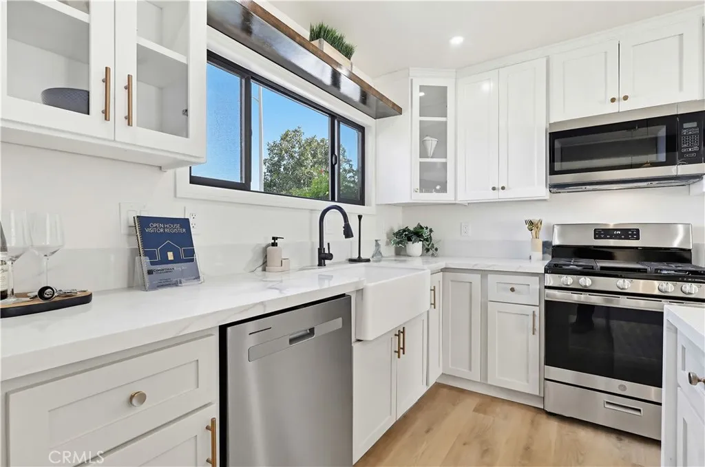 Completely remodeled, this modern and inviting home is ideally located on a private street near the end of a quiet cul-de-sac. The open-concept layout features wide-plank flooring, abundant natural light, and a stunning chef’s kitchen with quartz countertops, custom cabinetry, stainless steel appliances, and a large statement island perfect for entertaining. Thoughtful designer finishes continue throughout, including a spa-inspired bathroom and seamless indoor-outdoor flow. Stylish, functional, and move-in ready. This home is conveniently located while still offering privacy and tranquility.