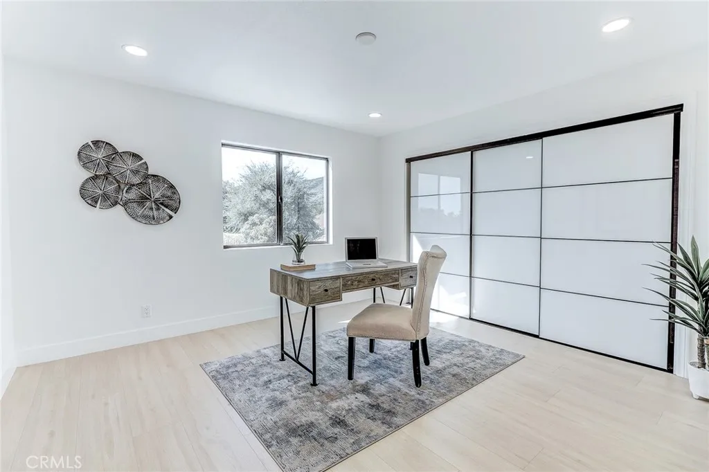 Exquisitely renovated and impeccably designed, this stunning 4 bedroom, 3 bath estate in the heart of Glendora offers 2,652 square feet of sophisticated living and effortless elegance. Privately set behind a sweeping circular driveway and complemented by a three-car finished garage with generous additional parking, this residence immediately impresses with its striking curb appeal, partial brick façade, and grand double-door entry. Inside, upgraded wide-plank flooring and soft recessed lighting create a warm yet contemporary ambiance throughout. The thoughtfully designed formal living and dining spaces include a step-down living room adorned with a charming bay window—an inviting setting for intimate gatherings and refined entertaining. At the heart of the home lies a spectacular, fully remodeled chef’s kitchen featuring gleaming quartz countertops, brand-new stainless-steel appliances, custom cabinetry, and a dramatic waterfall island with seating for four. The adjoining breakfast nook overlooks the family room through a sleek glass balustrade and opens seamlessly to the backyard, creating a natural flow between indoor comfort and outdoor leisure. The step-down family room is rich in character, highlighted by a statement brick-mantled fireplace, a full wet bar, and an expansive sliding door that enhances the home’s indoor-outdoor lifestyle. A desirable downstairs bedroom suite offers privacy and flexibility, complete with yard access and serene mountain views. The adjacent three-quarter bath has been beautifully reimagined with quartz counters, designer cabinetry, and direct outdoor access—ideal for guests or future pool convenience. Ascending the modern glass-balustrade staircase, the primary suite serves as a true private retreat. Enjoy a covered balcony, dual custom closets with elegant Japanese koji-style doors, and a spa-inspired bath featuring a soaking tub, separate shower, dual vanities, and a state-of-the-art Japanese bidet toilet. Two additional upstairs bedrooms capture picturesque backyard and mountain vistas and share a tastefully remodeled bath appointed with a waterfall shower and premium finishes. The backyard is a tranquil sanctuary, thoughtfully landscaped and centered around an inviting in-ground hot tub. A detached structure with electricity offers endless possibilities whether envisioned as a private fitness studio, creative workspace, executive office, or refined retreat.