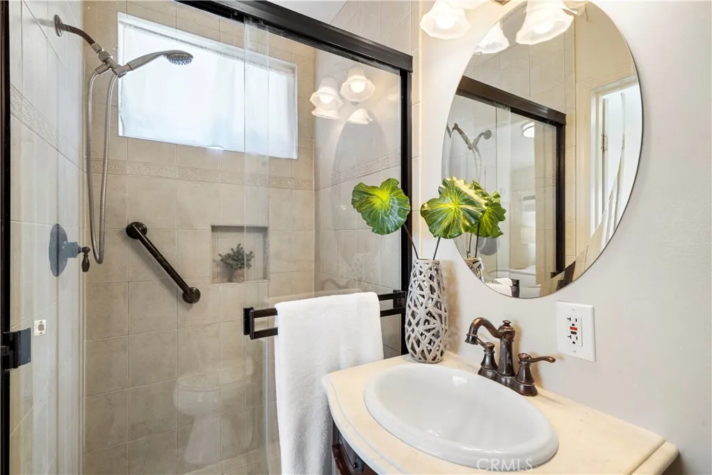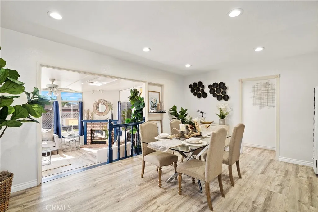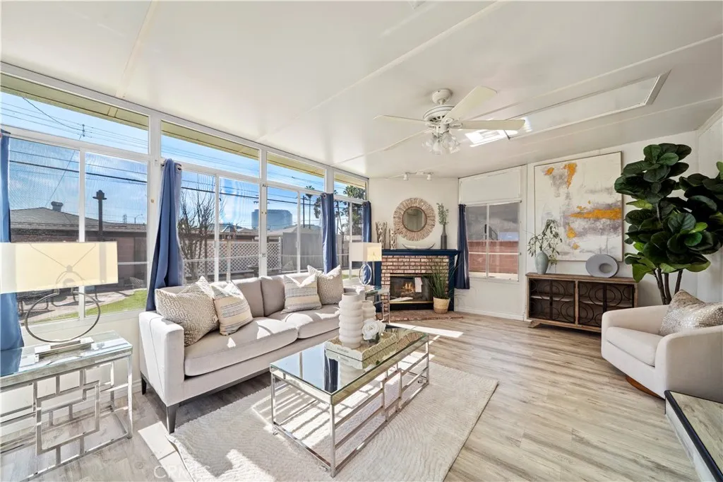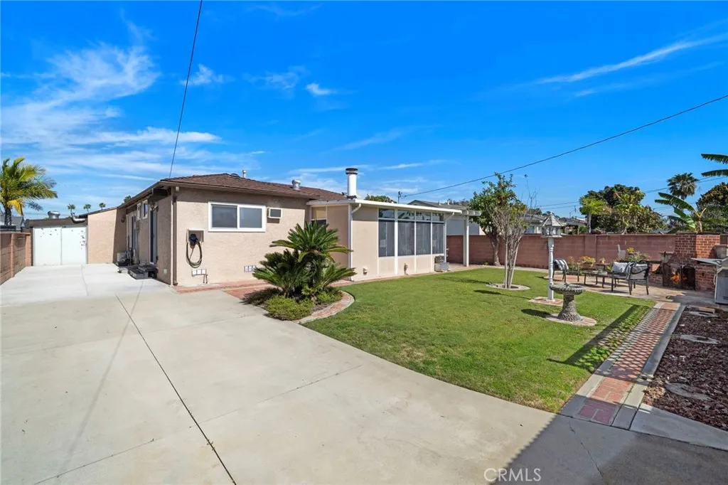 Wow! What a find! This absolutely charming, upgraded, and expanded single story home is located in the best Midway City neighborhood, one block from Huntington Beach, in an award-winning school zone, and has both a front driveway to a two-car garage AND a gated back driveway with alley access that can park 6 more cars or RV and includes a Tesla charging station. This sweet dream home offers 3 bedrooms, 2 bathrooms, and a total of 1,297 SQFT of the house - that includes: 1,059 SQFT, original home size, PLUS a beautiful 238 square foot sunroom with fireplace, ceiling fan, and French Doors opening to a pristine wrap-around tranquil backyard that includes a covered patio, a 2nd flagstone patio with outdoor fireplace, lush lawn, brick-accented hardscape, manicure landscaping, blockwall fencing, a storage shed, and that exceptional back driveway with gates to alley. Such a great backyard for entertaining! Beautiful curb appeal and welcoming front porch greet you. Step inside to Luxury Vinyl Plank Flooring, extensive recessed lighting, dual pane windows, mini-split A/C, and a remodeled kitchen which boasts granite countertops, Carrera-marble-style flooring, custom white cabinetry, garden window, and stainless gas stove & microwave plus dishwasher & refrigerator. There is a beautiful breakfast nook dining area open to the kitchen that has washer/dryer hook-ups (laundry can be inside or in garage). Both bathrooms are remodeled with new vanities, fixtures, and tile flooring, designer tile surrounds, and glass enclosures. There is a tub/shower combo in one and walk-in shower in the primary suite. This lovely home is truly located in an exceptional neighborhood near Little Saigon, Old World, Golden West College, and Bella Terra, the beach, and has easy freeway access.