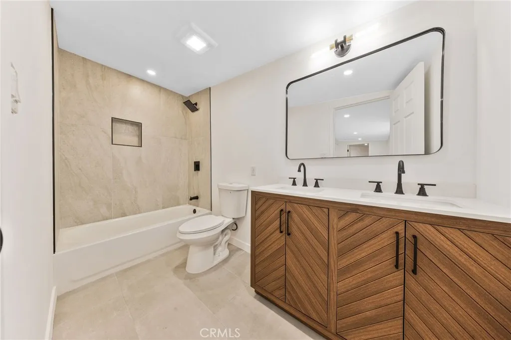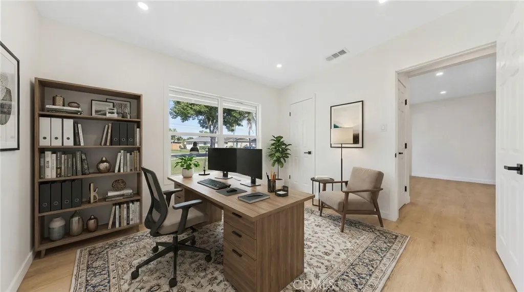 Welcome to 12128 Pantheon Street, Norwalk, CA 90650 — a beautifully reimagined residence offering modern comfort, quality craftsmanship, and thoughtful design throughout. This 3-bedroom, 2-bathroom home features 1,089 square feet of living space and has been extensively renovated from the inside out. The spacious primary bedroom includes an en suite bathroom and a walk-in closet, providing both privacy and functionality. An inside laundry room adds everyday convenience, and both bathrooms feature tubs, ideal for families or guests. Major system upgrades include brand-new electrical with a new panel and full rewire, new plumbing, and a full central HVAC system—not split units—ensuring year-round comfort and long-term peace of mind. The kitchen has been completely updated with new cabinetry, sleek quartz countertops, a stylish backsplash, new sink and garbage disposal, along with brand-new stainless appliances including a dishwasher, stove, and hood vent—perfect for both everyday living and entertaining. Throughout the interior, enjoy new waterproof vinyl flooring, new interior doors, and fresh interior and exterior paint, creating a clean, cohesive, and modern aesthetic. The exterior has been thoughtfully improved with new windows, a new garage door, new exterior doors, updated rear stucco, and new exterior light fixtures. The property also boasts new sod in both the front and back yards, a new sprinkler system, and a new concrete driveway, offering exceptional curb appeal and low-maintenance outdoor living. This is a truly turnkey home with extensive upgrades rarely found at this price point—perfect for buyers seeking comfort, style, and reliability in a desirable Norwalk neighborhood.