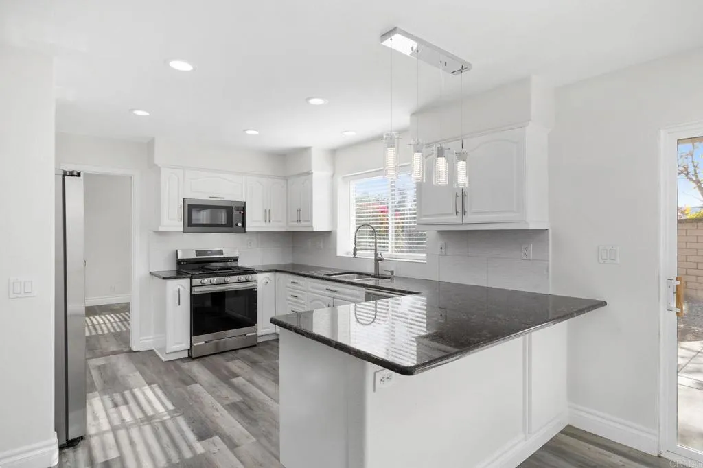 Nestled in the scenic eastern hills of Escondido, this spacious move-in-ready home offers one of the most versatile floor plans in the neighborhood with 4 bedrooms, 3 full bathrooms, and a large optional 5th bedroom or office ideal for multigenerational living, remote work, or growing households. Step inside to a bright, open interior featuring updated flooring throughout, fresh interior paint, and modern LED recessed lighting, while a welcoming gas fireplace creates a warm gathering space for everyday living and entertaining. The spacious kitchen showcases refreshed cabinetry with ample storage and a functional peninsula that flows seamlessly into the main living areas, complemented by brand-new kitchen appliances and a new washer and dryer for added convenience. A full bedroom and bathroom on the main level provide flexibility for guests or a private workspace, while upstairs you’ll find an oversized primary suite along with three additional bedrooms and a dedicated laundry room designed for comfortable daily living. The expansive backyard offers a private outdoor retreat with large grassy areas for play and mature fruit trees including guava, tangerine, pomegranate, and apple, all with low-maintenance landscaping so you can spend more time enjoying and less time maintaining. Additional highlights include a 2-car garage with a large driveway, no HOA, and no Mello-Roos, all ideally located near Dixon Lake, Daley Ranch trails, Mayflower Dog Park, shopping, dining, and convenient freeway access a rare opportunity to own one of the largest and most flexible homes in this established Escondido neighborhood, ready to enjoy immediately without the cost, time, or stress of remodeling. Photos may include virtual staging for illustrative purposes only. No furniture or décor depicted in staged images is included in the sale.