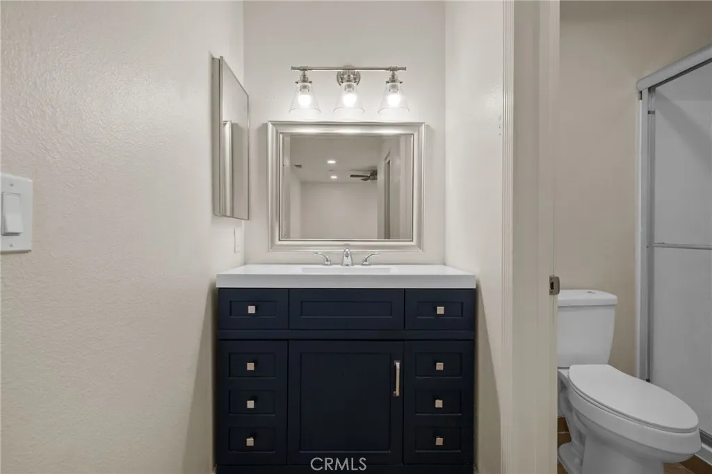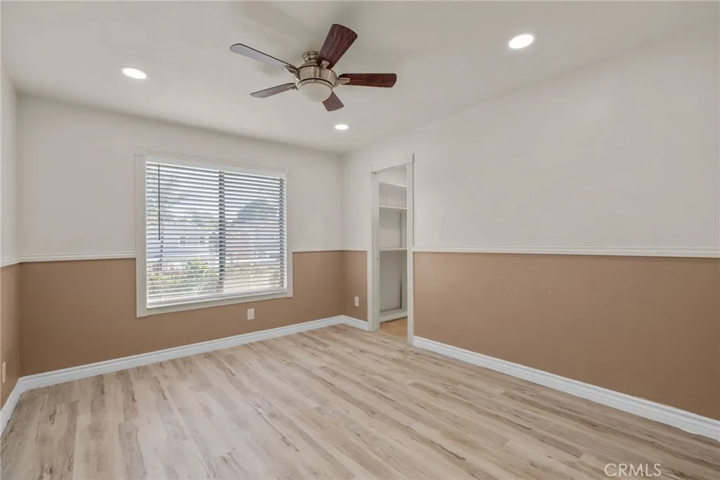This home features two generously sized bedrooms. The primary suite is a true retreat with vinyl flooring, fresh paint, ceiling fan, blinds, and custom built-in shelving. You’ll love the walk-in closet and the beautifully updated primary bathroom complete with a modern walk-in shower. The secondary bedroom is also impressively sized and is complemented by its own updated bathroom, offering comfort and privacy for guests or family members.