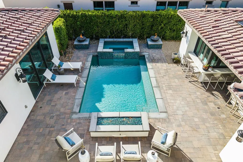 A rare offering in the heart of Indian Wells This extraordinary residence is a former developer's model home with over $300,000 in original upgrades. It has been further reimagined and customized by the current owners for elevated comfort and timeless style.From the moment you enter , the home evokes romance of Europe. Designed so that the interiors gracefully embrace and surround the pool courtyard., creating an intimate, resort-like setting reminiscent of a private villa in the south of France or Tuscany. Walls of glass blur the lines between indoors and outdoor living , allowing natural light to cascade through the living spaces. Offering 4 bedrooms, plus separate office, 4.5 baths including a detached casita. Each suite is thoughtfully appointed delivering privacy and refinement for residents and guests.Designer finishes, upgraded cabinetry , premium appliances custom lighting and architectural detailing reflects it's model home pedigree. Additional highlights include owned Solar for energy efficiency , two car garage plus golf cart garage with air conditioning and epoxy floors.. A separate storage room. The home is a smart home with all locks and systems controlled by an app on your phone, This stunning home is being offered designer furnished ( per inventory list)This is not just a home. It is a refined sanctuary designed for those who value intimacy, privacy and sophisticated, timeless elegance.