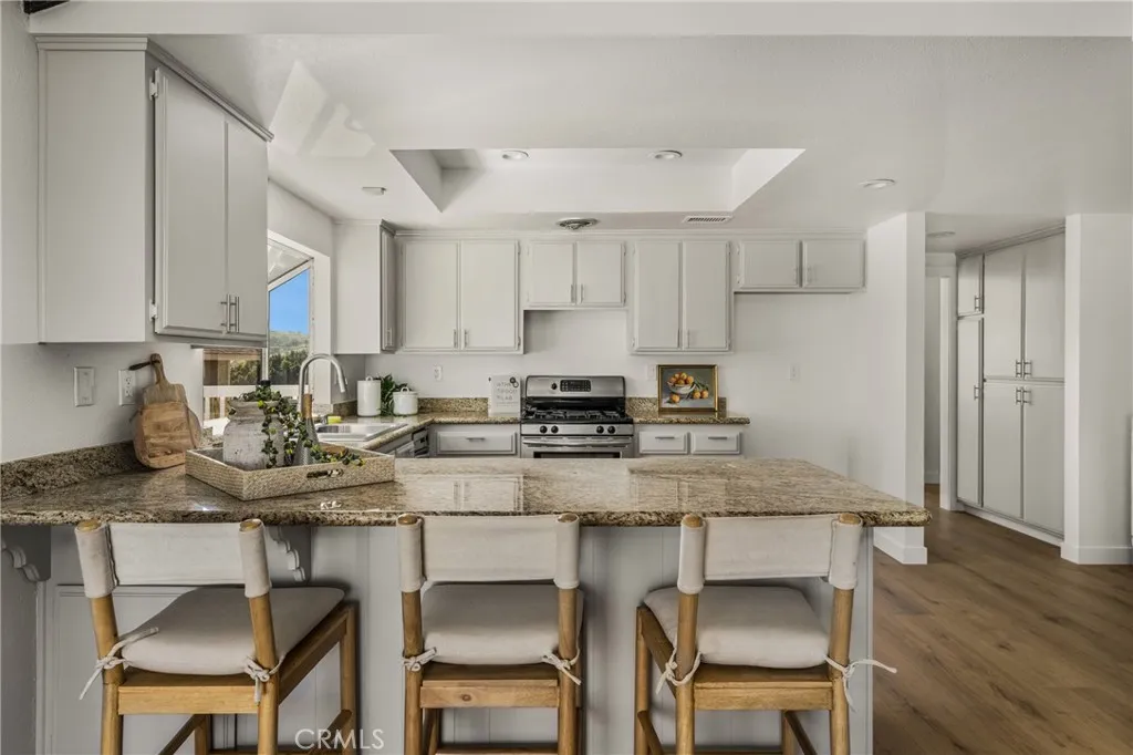 VIEWS VIEWS VIEWS!!! Another beautiful home meticulously remodeled and designed by celebrity designers from HGTV!! They have reimagined this home from top to bottom! No expense was spared on the transformation of this 3 bedroom, 2 bathroom home. This home is pristine and the many designer touches are highlighted by all the natural light. Whether you have a growing family or love to entertain, this home is perfect! Hand selected designer lighting and fixtures, an open kitchen, and stunning views are just some of the things that make this home unlike any other home on the market. The wide plank laminate flooring throughout the home is not only beautiful, but it is easily maintained. The chef's kitchen is gorgeous with plenty of cabinet space, beautiful granite counter tops, stainless appliances, a large peninsula with seating, and mountain views out of the back and side of the house. The primary bathroom is a spa like oasis with a dual vanity, high-end fixtures, and quartz counter tops. The secondary bathroom is just as impressive with a new vanity, high-end fixtures, and a electronic bidet toilet. The main living area boasts vaulted ceilings, a floor to ceiling fireplace, and panoramic views. All bedrooms are good sized with ample closet space and boast the same wide plank flooring as the rest of the home. All of this AND a brand new wood deck, large yard, and a covered concrete patio perfect for entertaining. Show your most discerning buyers, they are sure to fall in love!!