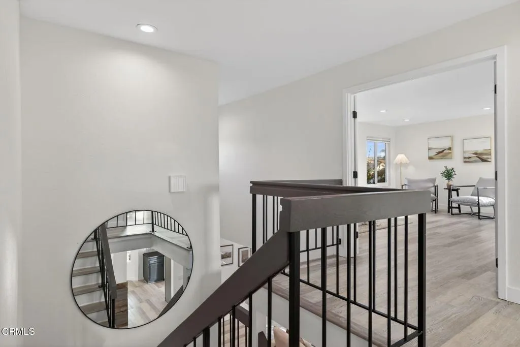 Set against the tranquil backdrop of open farmland with no rear neighbor, this stunning 2,700+sf South Moorpark residence offers the rare blend of privacy, and elevated living. Endless skies & breathtaking sunset views create a daily masterpiece right from your own backyard. Beyond its alluring curb appeal & meticulous landscape, the home's light-filled interior welcomes you with soaring ceilings, and an expansive open layout- offering two spacious living areas, each anchored by their own fireplace. A formal dining room provides the perfect setting for elegant dinners, while the beautifully updated kitchen opens seamlessly to an additional casual dining nook, ideal for morning coffee or sunset meals. The spacious kitchen is complete with ample storage space, new stainless appliances, butcher block counter tops, gas range, wine fridge and a large bay window to welcome mountain views and stunning sunsets. Step outside to the backyard where a spacious covered patio sets the stage for year-round outdoor living. The full perimeter of mature fruit trees (apples, oranges, guava, pomelo and multiple citrus) creates a lush orchard-like setting--while tall ficus hedges provide additional privacy and a rich green backdrop. Fully plumbed for both an above ground pool and hot tub, the space provides endless possibilities for outdoor fun. Upstairs, the home features all four spacious bedrooms and two additional fully renovated baths- ideally keeping living areas downstairs, while maintaining privacy and separation above. The massive primary suite is a true retreat- a sanctuary with generous proportions, abundant natural light, and a beautifully updated bath with dual vanities, soaking tub, large shower, walk-in closet, and exceptional birds eye views of the serene farmland below. Down the hall are three additional bedrooms, and fully updated guest bath with walk in shower. Countless highlights include all newer dual pane windows with privacy shades throughout, recessed lighting, laminate flooring, central air conditioning, fully owned Brinks alarm system with security cameras and doorbell camera, and multiple eero wifi extenders. Large THREE-car attached garage provides ample storage and parking, plus TWO Tesla brand EV car chargers! Relish in the luxury of this modern and move-in ready home, while only minutes to parks, great schools, restaurants, shopping, newer furnace, and all that beautiful Moorpark has to offer!
