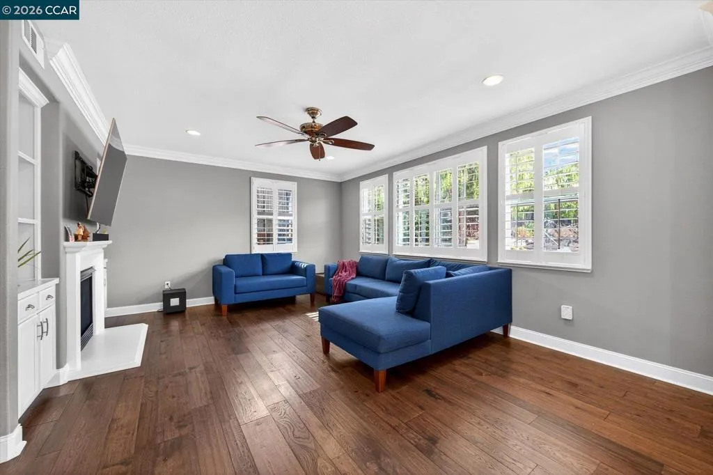 Welcome to this exquisite residence nestled in the prestigious Positano Development, where luxury meets modern convenience in a highly sought-after community. Discover a bright and inviting interior bathed in natural light both morning & afternoon. Main level boasts gleaming hardwood floors, custom designer painting that adds a touch of elegance to every room. The stunning chef's kitchen, featuring a spacious island, ample counter space, abundant cabinet storage, and a convenient walk-in pantry—perfect for culinary enthusiasts. Adjacent, cozy family room invites relaxation with a gas fireplace, downstairs bedroom and full bath. Upstairs, you'll find spacious bedrooms, custom closet organizers, along with a large bonus loft for relaxing or study. Upstairs Laundry room. The home is thoughtfully designed for efficiency and sustainability, including owned solar system, tankless water heater, whole house water filter, Tesla EV charger in the 3-car garage, w/ epoxy-finished floor. Level private backyard is an entertainer's dream, designed for gatherings and children's play. Gas fire pit, lush garden areas, all in complete privacy. The location is unbeatable: surrounded by neighborhood parks, fantastic schools, minutes from restaurants, Costco, shopping centers, hospitals, 580 Fwy