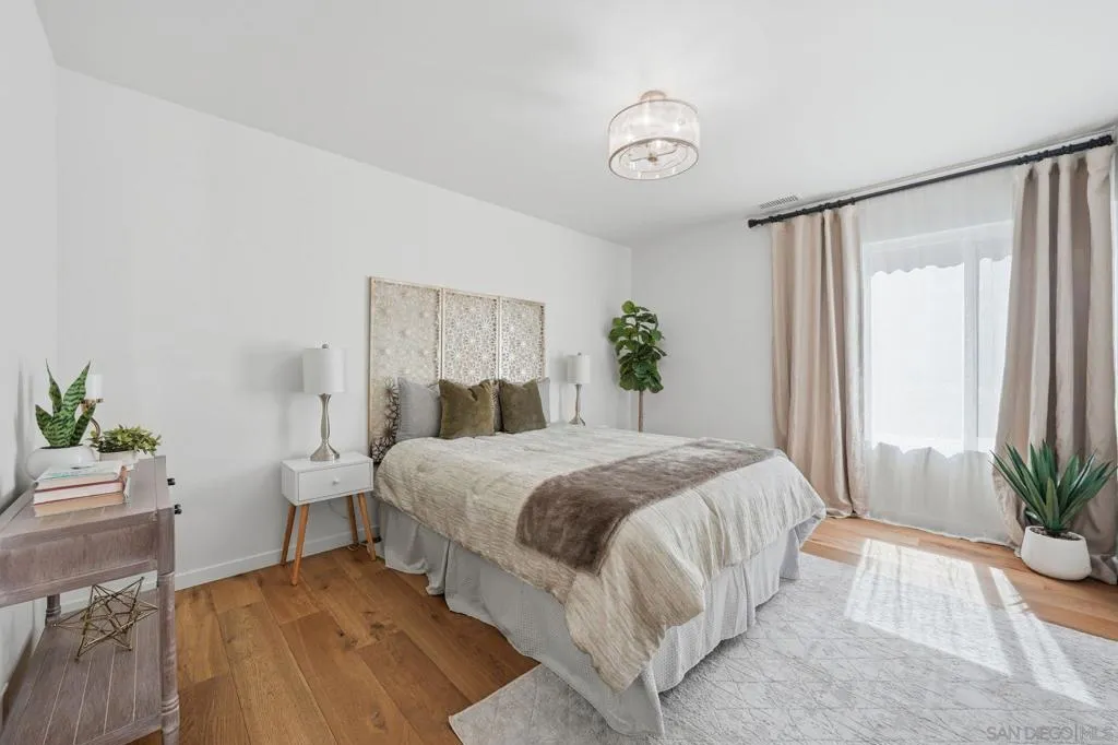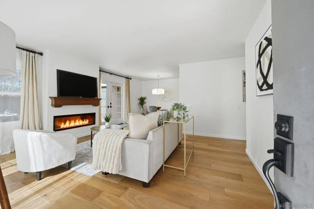 Tucked into a lush, park-like community with beautiful greenbelts and mature trees, this single-level home offers privacy and great natural light throughout. Inside, you’ll love the warm wood floors, fresh neutral finishes, and easy open layout. The updated kitchen features sleek cabinetry, stainless steel appliances, and quartz countertops, flowing right into the dining and living spaces — perfect for everyday living or having friends over. The bedroom is bright and calming, creating the perfect retreat at the end of the day. 5 mins to UTC mall, close to Rose Canyon Open Space, La Jolla beaches
