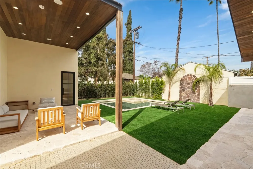Experience the pinnacle of luxury and sophistication in this breathtaking custom-built estate nestled in the heart of Valley Village. Built to the highest standards of craftsmanship, this architectural masterpiece offers 5 expansive bedrooms and 6.5 designer bathrooms, blending elegance, comfort, and modern living for an exceptional lifestyle. This fully custom construction showcases meticulous attention to detail and superior-quality finishes throughout. Clean lines and modern design define the home, while luxurious stone accents enhance both the interior and exterior, creating a striking yet timeless aesthetic. Upon entry, soaring 10-foot ceilings set the tone for a bright, open atmosphere that feels both grand and inviting. The chef-inspired kitchen is a true showpiece, featuring an oversized island, premium JennAir appliances, sleek custom cabinetry, and refined finishes. Perfectly suited for both everyday living and upscale entertaining. The bathrooms are beautifully appointed with high-end finishes and designer glass enclosures, offering a spa-like ambiance throughout. The primary suite bath is a true retreat, designed in a spa style to provide a relaxing and indulgent experience. Designed for seamless indoor-outdoor living, the home features a built-in speaker system throughout the interior living spaces and patio. Step outside to your private resort-style oasis, complete with a swimming pool, spa, and outdoor shower. The expansive patio includes multiple lounging areas and a stunning pool cabana with a full bath - ideal for guests and elevated entertaining. The beautifully landscaped and meticulously maintained grounds enhance the tranquil setting. Security and privacy are paramount, with a full camera surveillance system, a fully gated perimeter, and a private electric gate providing both peace of mind and exclusivity. Adding versatility and value, the fully self-contained ADU offers the perfect space for extended family, guests, or potential rental income. From the smooth stucco exterior with stone detailing to the thoughtfully designed and highly functional kitchen, every element of this home reflects exceptional execution and a commitment to excellence. This is more than a home! it’s a statement of refined luxury living. Schedule your private showing today, this one won't last!