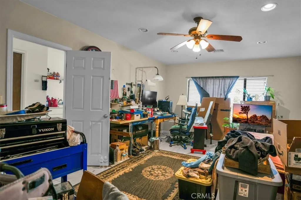 Looking for a spacious desert home or investment property with STUNNING mountain views?! Look no further! This centrally located home in the Chocolate Drop area of 29 Palms is nicely situated on .64 acres of land (FULLY FENCED) with a convenient semicircle driveway & beautiful mountain views to the North and South. Featuring 2,218 sqft of living space, this home offers a total of 4 bedrooms, 3 bathrooms, a family room AND a main living room with central heating & air throughout. The kitchen adorns warm wood cabinetry, matching white appliances, an oversized walk-in pantry and a large pop-out window above the kitchen sink to take in the beautiful desert views. Just off the kitchen is the light-filled living room which features a vaulted ceiling, a cozy wood-burning fireplace and charming built-in corner shelving. The 3 south-side bedrooms include newer ceiling fans and carpet flooring and the primary bedroom includes an ensuite bathroom with a single-sink vanity and shower/tub combo. This home also has a spacious laundry room just off the kitchen which leads to the 4th bedroom and 3rd bathroom (a previous garage conversion) complete with its own mini-split & walk-in closet making it a great guest room or second primary suite. Outside you'll be delighted to find a sizable covered patio, 3 SHEDS (2 of which are stucco'd and have 2 story storage rooms) and a fenced-in garden for those with green-thumbs. There are also Sun Run solar panels on the roof (currently not connected) that a buyer may either have removed or reconnected. With plenty of space to entertain or relax around a firepit on a starry desert night, this property has A LOT to offer! Schedule your showing today!