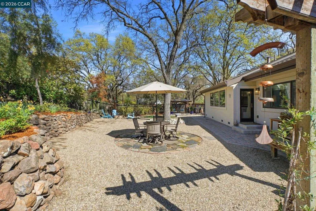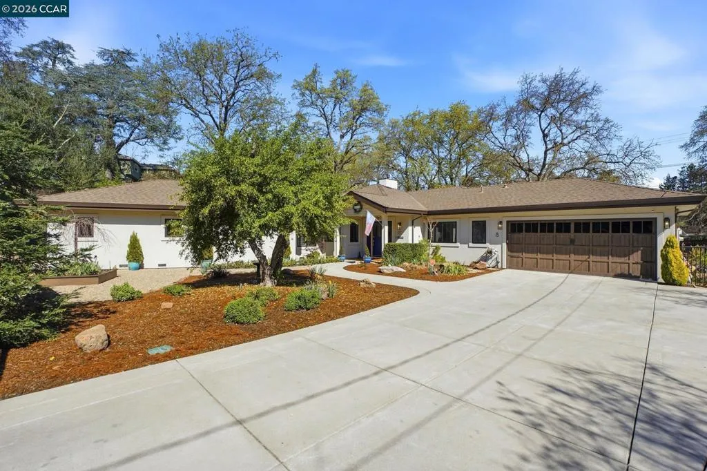 Remodeled Westside Alamo single story executive home completed with permits in 2022; fully fenced & gated, located on a private street of only 3 homes. The front porch entry invites you in to a vaulted living space drawing you through to the 1/2 acre parklike setting overhung with it's canopy of mature Oak trees. The high vaulted ceiling of this gorgeous custom chefs’ kitchen showcases both painted and natural wood custom cabinets with quartz and quartzite counters, featuring stainless steel Thermador appliances; microwave/oven, fridge/freezer, 2 dishwashers, 8 burner gas stove-top, wine fridge, walk-in pantry, and built-in kitchen nook compliments the oversized center island. The 5 bedroom home has 2 ensuite primary bedrooms, the main primary bedroom with French-door access to a cobbled patio has a custom built-in closet; a spa like bathroom with soaker tub, dual sinks, rift oak cabinetry and a spacious shower stall. Mature Oaks & Olive trees create the relaxing setting surrounded by low maintenance hardscapes, vines and winding pathways, a pavilion, a 4 hole putting green & firepit. (Previously approved 3rd garage and 650sf +/- ADU plans for side yard included.)