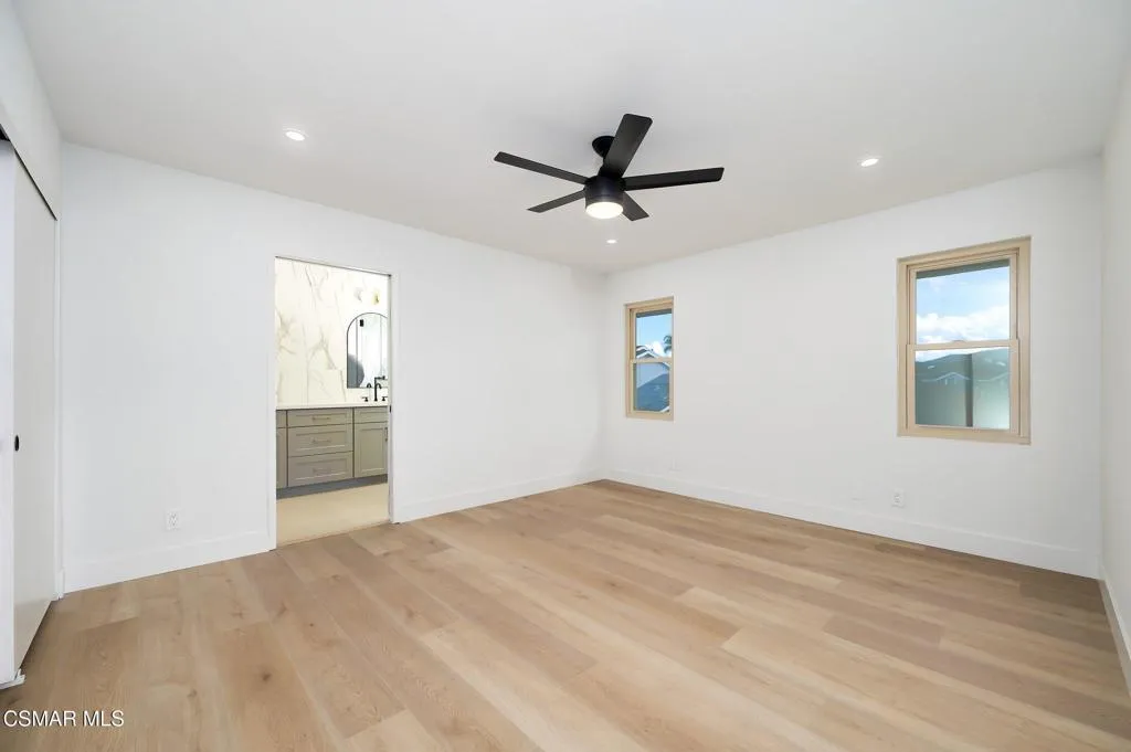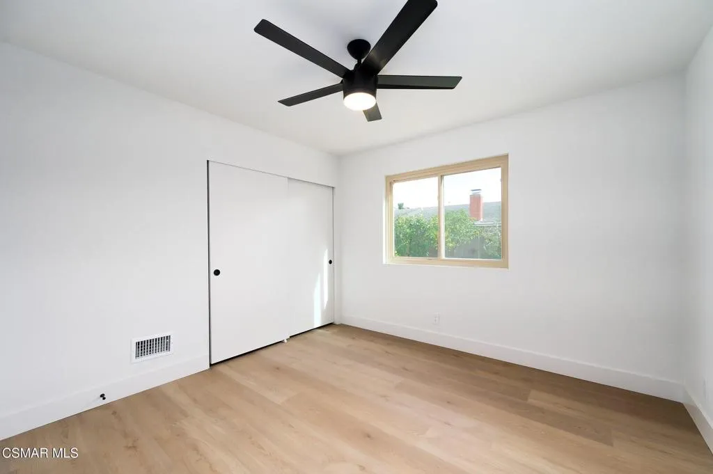 Extraordinary 4-bedroom, 3-bath home thoughtfully designed to meet today's modern lifestyle. In addition to the four bedrooms and three bathrooms, the home features a desirable downstairs bedroom, a dedicated laundry room with sink, and a spacious 3-car garage. From the moment you arrive, you'll appreciate the freshly painted exterior, updated dual-pane windows, and a durable 50-year composition shingle roof.Inside, soaring vaulted ceilings extend into the kitchen, while new luxury wide-plank vinyl flooring throughout creates a bright and inviting atmosphere. The exquisite chef's kitchen is brand new and showcases soft-close cabinetry, ample pantry space, a built-in trash bin, new appliances, and a built-in microwave. A skylight over the kitchen sink and recessed lighting enhance the space, which opens seamlessly to the family room featuring a gas fireplace and a newly built-in bar with sink, perfect for entertaining.Just off the living room is a downstairs bedroom, laundry room, and a full bathroom complete with all-new fixtures, a walk-in shower with new tile surround, frameless shower door and a new vanity. Upstairs, the primary suite offers a cozy sitting area with fireplace, built-in shelves, dual closets, ceiling fan, and a spa-like primary bath featuring an oversized walk-in shower with dual shower heads, and frameless shower door, an extended dual-sink vanity with generous counter space, and a new toilet in its own private water closet. Two additional bedrooms, each with ceiling fans, share a fully renovated Jack-and-Jill bathroom.Step outside to a fully fenced backyard with lush landscaping, grassy area, fruit trees, and drought-tolerant landscaping, ideal for relaxing or entertaining. Additional amenities include recessed lighting throughout, new plumbing fixtures and valves in the kitchen and bathrooms, a newer HVAC system with air conditioning, and two brand-new garage doors with new motors.Located near Woodside Park, top-rated schools, and shopping, this home offers the perfect blend of luxury, style, and convenience; a true gem combining refined design with modern comfort. Plus NO HOA.