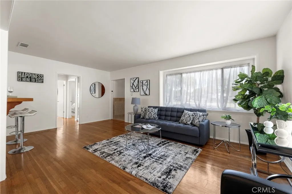 Nestled in the highly desirable Carson Park area of Long Beach, this stunning single-family residence offers the perfect blend of comfort, style, and location. Ideally situated near El Dorado Park and top-rated schools within the designated Long Beach Unified School District, the home delivers exceptional everyday living. Enter to discover beautiful hardwood floors throughout and a thoughtfully updated kitchen featuring quartz countertops, a classic subway-tile backsplash, and a convenient breakfast bar. The spacious living room flows seamlessly into the dining area, creating an inviting layout ideal for both relaxing and entertaining. The home offers three generously sized bedrooms, including a light-filled primary retreat. One secondary bedroom features charming French doors that provide direct access to the backyard. The full bathroom showcases timeless appeal with a classic tiled shower stall and separate soaking tub, while a convenient powder bath for guests is located just off the pantry. Outdoors, enjoy a large backyard complete with a spacious patio—perfect for gatherings, play, or quiet evenings. The detached two-car garage is a standout feature, equipped with a workbench, laundry hookups, and a bonus enclosed flex space ideal for a home office, gym, or creative studio. This Carson Park gem combines location, functionality, and charm—ready to welcome its next owner home.