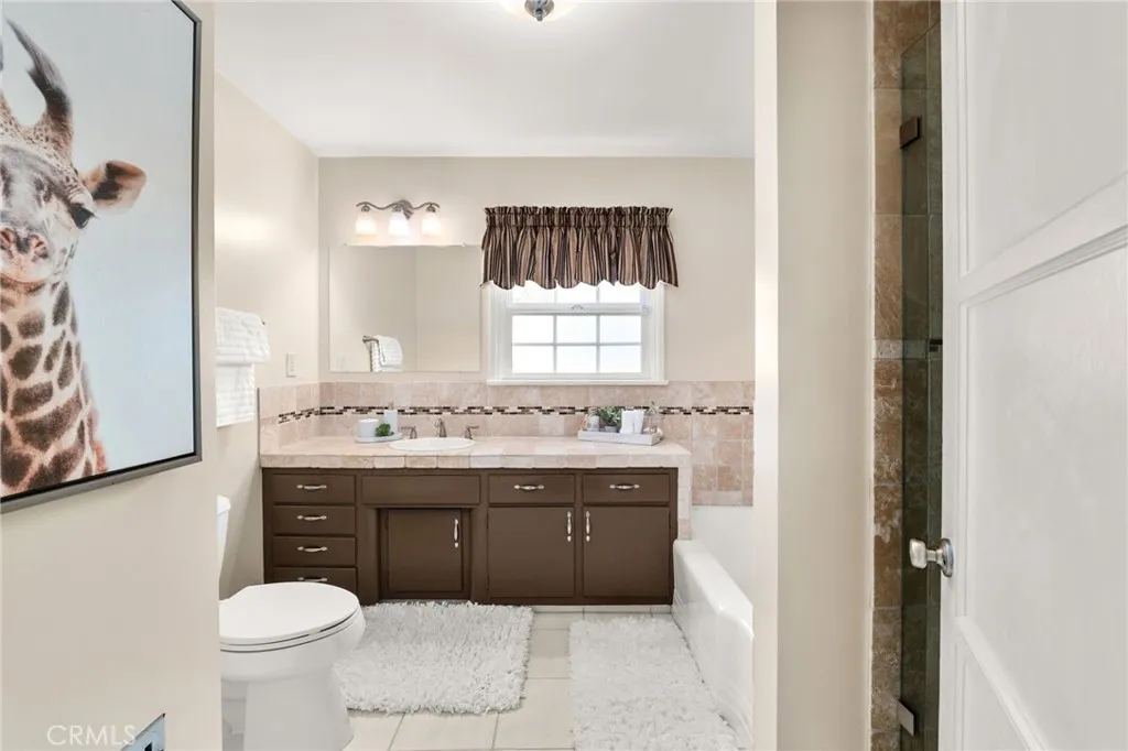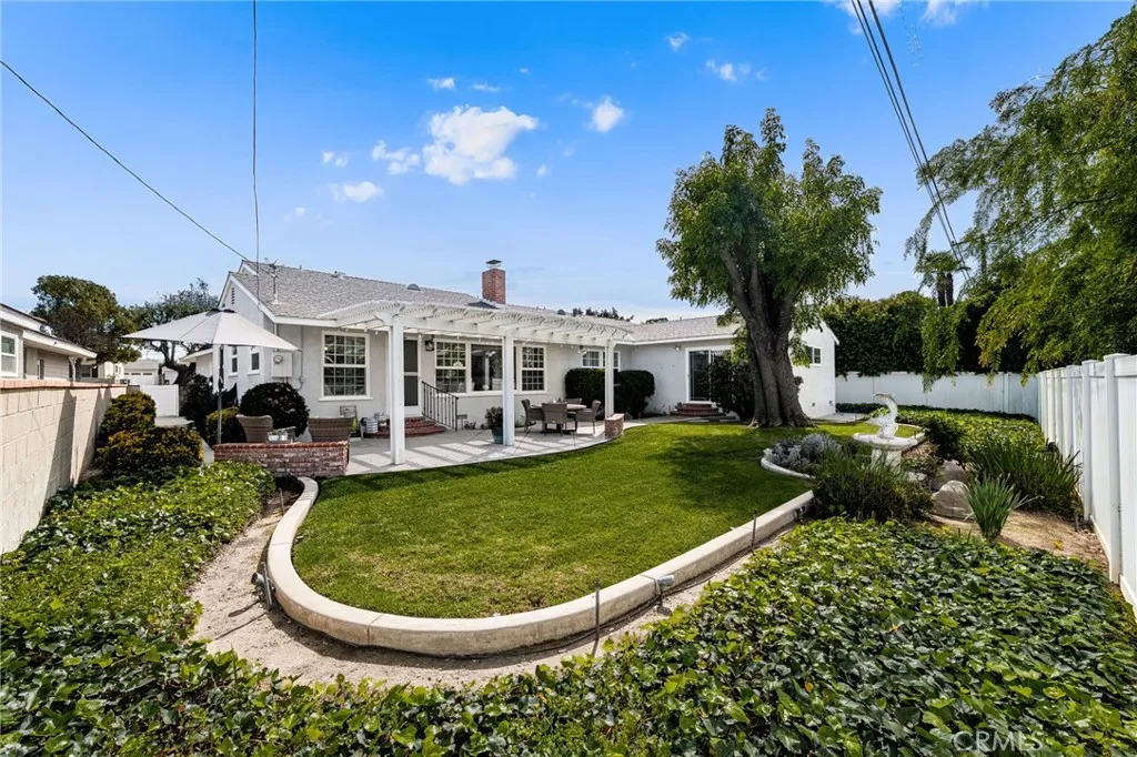 Charming single level 4 bedroom, 3 bathroom home nestled in the premier neighborhood of Golden Hills in northern Fullerton, renowned for its vintage appeal and lush greenery, peaceful tree lined streets and its access to the Fullerton Loop Trails, a great place for biking, walking and hiking. The home offers nearly 2,400 sq. ft. and a large 9,200 sq. ft. lot. Enter into a dedicated entryway that leads into the spacious living room featuring picture windows that frame the stunning views of the beautiful landscaped backyard and treetop vistas, plus a cozy gas fireplace. There is also a separate family room with built-in storage cabinets, shelving, an adorable built-in corner seating nook, and a door leading directly into the kitchen. Kitchen has been updated, beautiful white washed cabinets, neutral tiled countertops and backsplash, recessed lighting, and opens into a large dining area with an abundance of natural light and backyard access. A private laundry room with built in storage cabinets sits just off the kitchen, offering direct backyard entry. Abundant hall storage and closet space lead to the primary bedroom. The expansive primary suite includes a slider to the backyard, dual sliding-door closets and a private updated bathroom featuring a walk-in shower with travertine tiles. Two additional good sized bedrooms connected by a Jack and Jill bathroom with an attractive subway tile shower and frameless glass door, while the fourth spacious bedroom-perfect as a bedroom, office, or flexible space that offers a wall of windows overlooking the backyard. A third updated bathroom, conveniently located near the large fourth bedroom includes a bathtub and separate walk-in shower. Home features include an abundance of built-in storage, dual paned vinyl windows, bright and airy ambiance created by plentiful windows and abundant natural light, ceiling fans, window shutters and blinds, newer garage door and opener and neutral paint colors. Original hardwood floors lie under the carpet through most of property. Outside, enjoy a serene backyard with a covered patio, cottage-style landscaping, newer white vinyl fencing, charming fountain, and a grassy area and treetop views. A two-car attached garage provides direct backyard access. Conveniently located near Downtown Fullerton, Hillcrest Park, Hiltscher Park, and the Fullerton Trails, and exuding curb appeal, this lovingly maintained home is truly move in ready, don't miss the opportunity to make it yours!