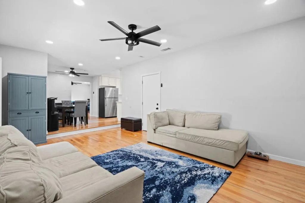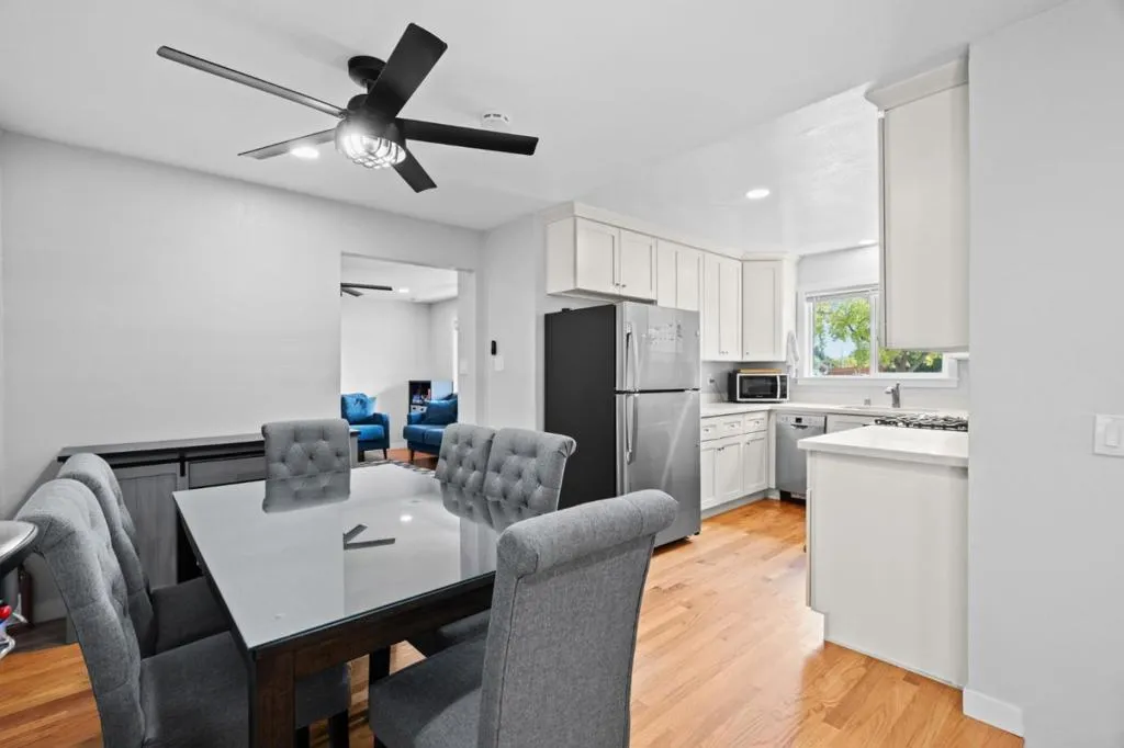 Welcome to this tastefully renovated 3-bedroom, 2-bath home offering a thoughtfully designed living space and a massive, low-maintenance yard. Situated on tree-lined street in a well-established Gilroy neighborhood, this move-in-ready home blends classic charm with modern upgrades. This home has been updated for contemporary living. The heart of the home features a sleek kitchen boasting off white shaker cabinets and elegant quartz countertops. The open floor plan is bathed in light from updated recessed lighting, complemented by ceiling fans in the bedrooms for year-round comfort. Both bathrooms have been completely remodeled with contemporary finishes, designer tile, upgraded vanities, and elegant fixtures, creating spa-like spaces youll love. The real showstopper? The spacious backyard offers endless possibilities ideal for outdoor dining, gardening, play, or simply relaxing. Professionally landscaped with premium turf for a lush look without the water bill, this massive space includes two storage shedsperfect for a workshop, home gym, or extra gear. A two-car garage and generous lot size add functionality and convenience. New: furnace, AC, bathrooms, recess lighting, turf, backyard fences and more!