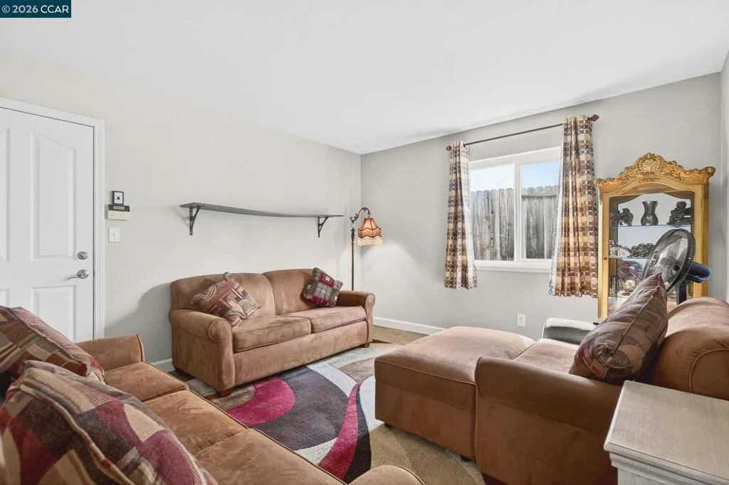Located on a corner lot in a court, 5100 Sundance offers 1,588 sq ft of comfortable living space on a generous 5,800 sq ft lot. This 3-bedroom, 2-bath single-family residence provides a functional floor plan and a convenient Antioch location. Step inside to a welcoming floor plan where the dining room flows seamlessly into the updated kitchen, showcasing beautiful countertops, a pantry, and an open connection to the living room. A cozy fireplace anchors the living space, while direct access to the backyard and patio creates an easy indoor-outdoor lifestyle—ideal for entertaining or relaxing at home. The spacious primary bedroom features its own ensuite bathroom for added privacy and comfort. A versatile bonus room offers flexibility for a home office, gym, media room, or play space. Dual-pane windows, central air conditioning, and a dedicated laundry room enhance everyday convenience and year-round comfort. Conveniently located close to parks, schools, shopping, and restaurants—this is one you won’t want to miss.