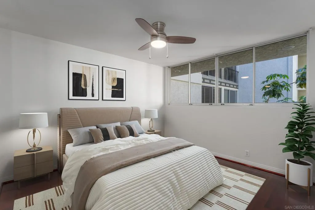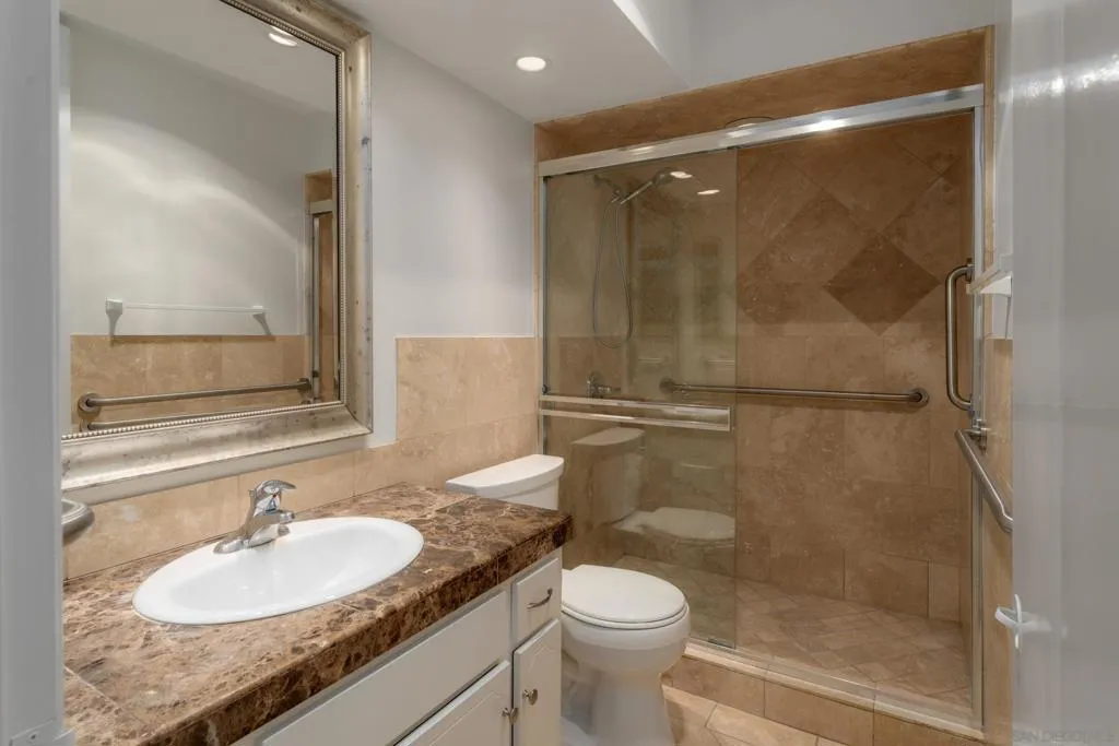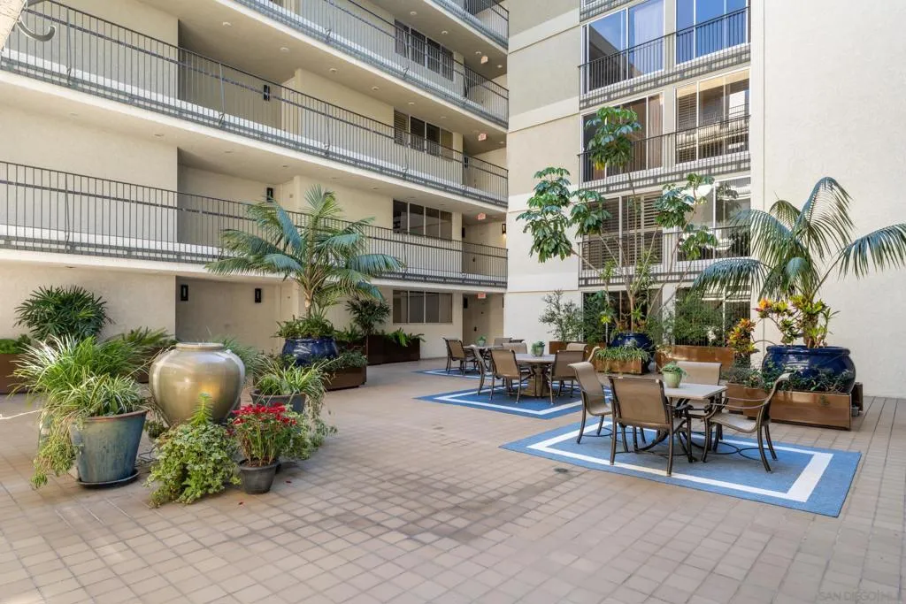 This beautifully updated 1-bedroom, 1-bath residence in the sought-after Devonshire building puts you right in the heart of the Village. Travertine flooring flows through the main living spaces, adding a polished, timeless quality. Bright and airy, the living area features two sliding glass doors that open to a Juliette balcony for easy indoor-outdoor living. A galley kitchen makes smart use of space with recessed lighting, granite countertops, and classic white cabinetry. Travertine floors and a tiled walk-in shower with a sliding glass enclosure give the bathroom a fresh, updated look. In the bedroom, hardwood flooring and mirrored sliding closet doors keep things light and functional. Whether you're looking for a primary residence, a coastal getaway, or an investment property, this is a low-maintenance option in a high-demand location. Secured underground parking, private storage, elevator access, and gated entry round out the building's amenities. You're steps from boutiques, galleries, restaurants, cafés, a movie theater, and everyday essentials. Prospect Street, sometimes called the "Rodeo Drive of San Diego," is just around the corner, and La Jolla Cove is a five-minute walk. Under $1 million in the heart of La Jolla Village. It's rare, and it's here. VA Approved!