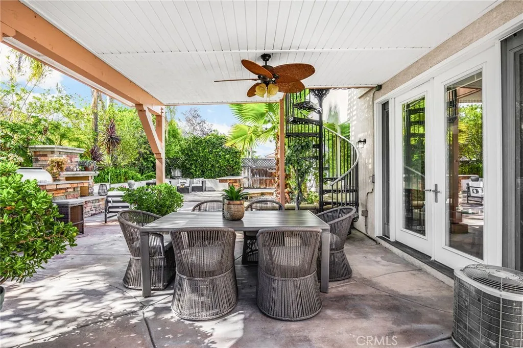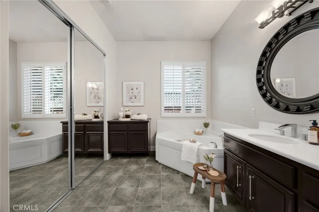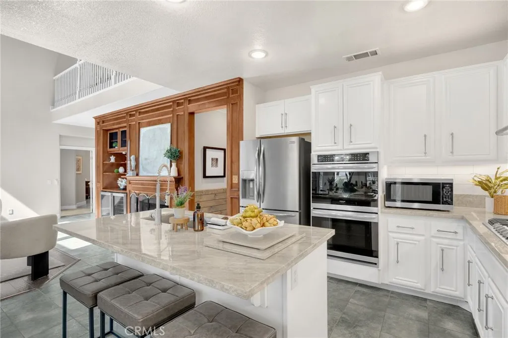 A MUST SEE PROPERTY! Located in The Greens, this exceptional home blends timeless elegance with modern comfort and a spectacular backyard in one of the area’s most sought after communities. From the moment you enter, you are welcomed by a formal living room and dining room that set the tone for refined gatherings and everyday luxury. The heart of the home is the dramatic family room featuring soaring ceilings with abundant natural light pouring in from the gorgeous windows, custom built-ins, a wine chiller, beverage fridge and a cozy fireplace that creates a warm and inviting atmosphere. The beautifully renovated kitchen is designed to impress with a generous center island, stone counters, stainless steel appliances, breakfast bar, pantry and a sunlit eating area that seamlessly opens to the covered patio, making indoor outdoor living effortless. Next to the kitchen is a large laundry room connecting with direct garage access. The main level primary suite offers a private retreat complete with French doors leading to the back terrace, a spacious walk-in closet and a luxurious bath featuring dual vanities, a walk-in shower and a relaxing soaking tub. A fourth bedroom has been thoughtfully converted into an office and can easily be returned to a bedroom to suit your needs. Upstairs you will find two additional bedrooms, a full bath and a versatile bonus room with endless possibilities that opens to an upper level deck with a spiral staircase providing direct access to the backyard oasis. Step outside to a stunning tropical inspired backyard designed for both entertaining and relaxation. Multiple outdoor living areas, a built-in BBQ, bar area and outdoor fireplace create the perfect setting for memorable evenings under the stars. Additional highlights include central air and heat, solar panels and a three car garage. This is more than a home, it is a lifestyle opportunity in one of Murrieta’s premier neighborhoods.