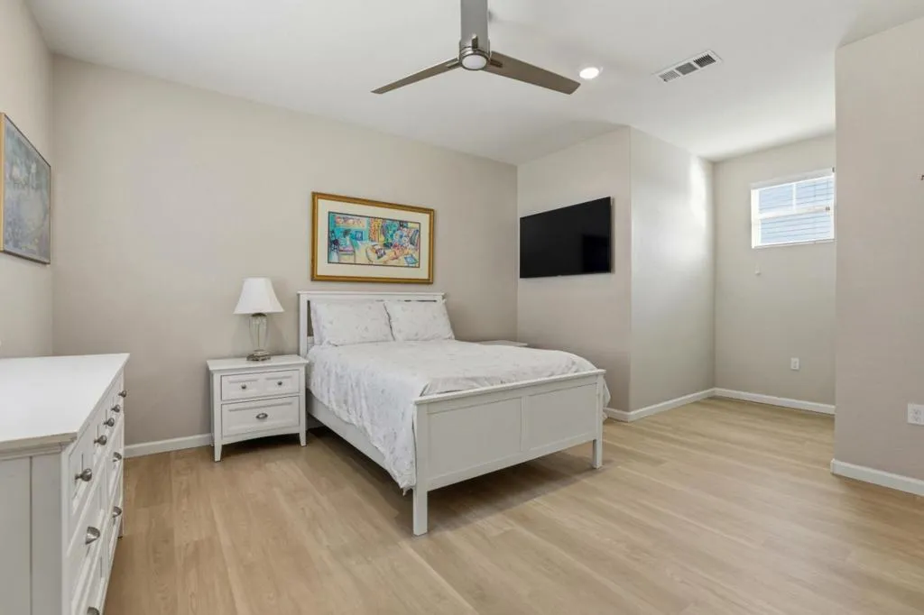 Welcome to 6385 Paysar Lane, a stylish and energy-efficient end-unit townhome-style condo located in the sought-after Ascent community of Glen Loma RanchGilroys premier master-planned neighborhood. Built in 2023, this nearly new 3-bedroom, 2.5-bath corner end-unit home, nestled in Building 4, offers a bright, open floor plan, modern finishes, and a prime interior location with only one shared wall, no front neighbors, and direct views of the dog park and surrounding hills. Enjoy the ease of a first-floor primary suite, where you can wake up and take in the beautiful morning sunrise right from your front window, complete with an ensuite bathroom is elegantly appointed with quartz countertops, and a large walk-in shower, creating a peaceful, spa-like retreat, while the generous closet space adds everyday convenience. Upstairs, you'll find two generously sized secondary bedrooms and a full bathroom with dual vanities, providing comfort and space for family or guests. The main living area features high ceilings, tall doors, and oversized windows that fill the space with natural light. The open-concept kitchen includes stainless steel Whirlpool appliances, stylish cabinetry, and seamless flow into the dining and living areasperfect for everyday living and casual entertaining.