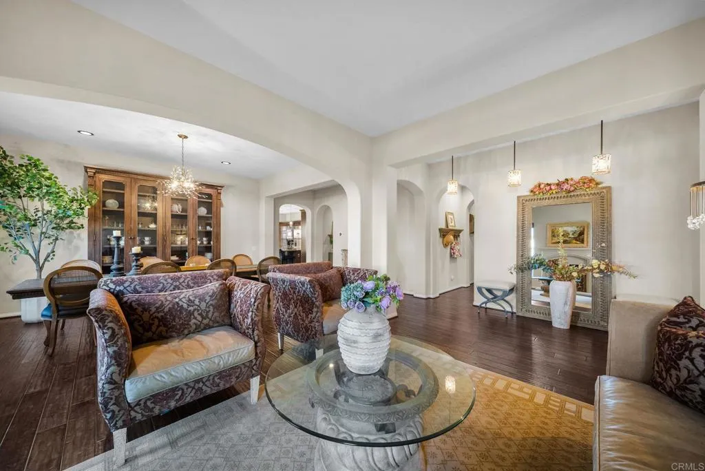 Welcome to The Renaissance, a 24-hour guard-gated community in Porter Ranch. Perched on a corner lot atop the hills, this single-story home offers peek-a-boo valley views and privacy with no neighbors directly behind it. Inside, 10-foot ceilings and engineered wood floors flow throughout, complemented by a desirable split-bedroom layout with a private primary suite. A separate wing with two additional bedrooms provides flexibility for guests, multigenerational living, or a dedicated home office. Designed for both functionality and entertaining, the backyard features a covered patio, built-in BBQ and fire pit, mature landscaping, and a spacious side yard. Located within the highly rated Porter Ranch Community School district and minutes to parks, scenic trails, and the shops and restaurants at The Vineyards at Porter Ranch, this rare single-story home offers a seamless blend of everyday convenience and refined comfort.