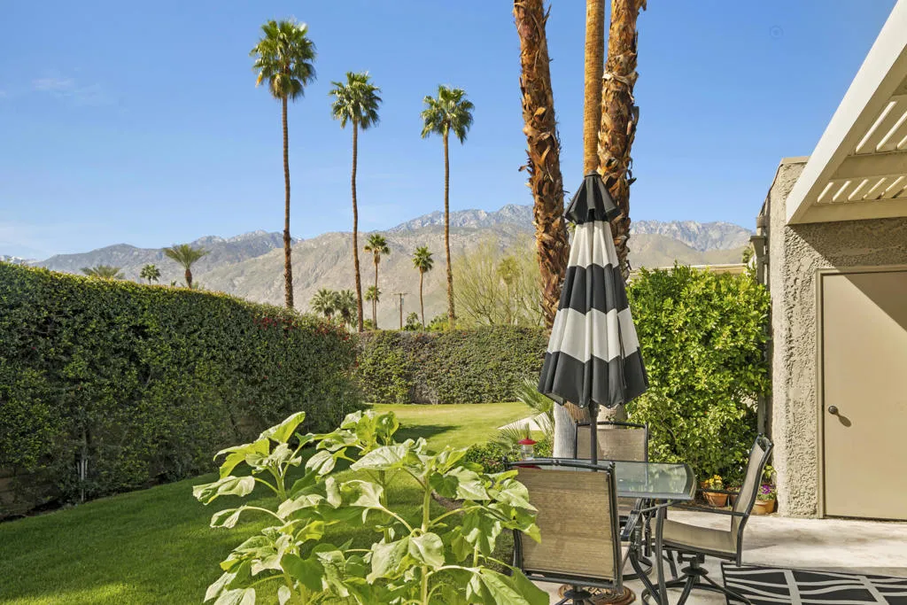 Located in the desirable Sunrise Oasis community, this single-level, 2 bedroom/2 bath condo offers light and bright living space in a prime central Palm Springs location.The updated interior features beamed ceilings in the living area, tile flooring throughout and a beautifully designed kitchen which anchors the main living space.This floor plan provides excellent separation of bedrooms. The guest bedroom features direct access to the enclosed front patio, while the spacious primary suite opens to the charming back patio. The primary bedroom has an updated bathroom with a walk-in shower and spacious walk-in closet.The enclosed front entry patio allows for the indoor/outdoor Palm Springs lifestyle, while the back patio space is perfect for coffee, a good book and maybe an afternoon cocktail, while enjoying the fabulous mountain view!Other recent upgrades include new windows (2022), HVAC (2022), ramadas added to the exterior for additional shade (2022), electrical panel (2023), and a new roof (2025), offering valuable peace of mind.Additional highlights include a 1-car garage, washer & dryer and convenient proximity to one of the community's three pools. Sunrise Oasis is a low-density community on land you own (no lease!) with 3 pools and tennis courts, just minutes from downtown Palm Springs dining, shopping, entertainment and nightlife. Perfect for full time living or a vacation retreat!