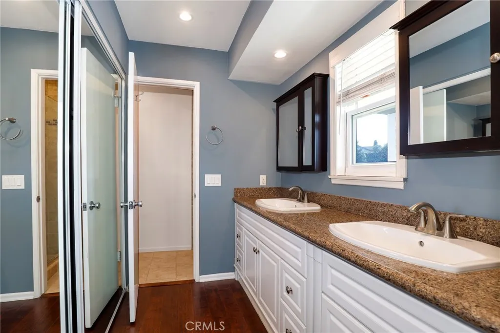 Move-in ready, four-bedroom, three-bathroom home located on a quiet cul-de-sac, featuring desirable RV parking and extensive upgrades throughout. This well maintained property features hardwood flooring in the main living areas and comfortable carpet in the bedrooms, enhanced by recessed lighting and attractive bedroom shutters. The updated kitchen features granite countertops and modern updated appliances, including an oven, stovetop, dishwasher, and sink, providing both style and functionality. Bathrooms have been thoughtfully remodeled with upgraded faucets, remodeled showers, and low-flow toilets for added efficiency. Significant system improvements include replaced windows, a replaced roof, an updated HVAC system, and a tankless water heater, offering peace of mind and energy savings. The backyard is designed for entertaining and relaxation, featuring pavers, a cozy fire pit, and a recently installed patio cover for year-round enjoyment. A rare opportunity to own a turnkey home combining modern upgrades, efficiency, and a prime cul-de-sac location.