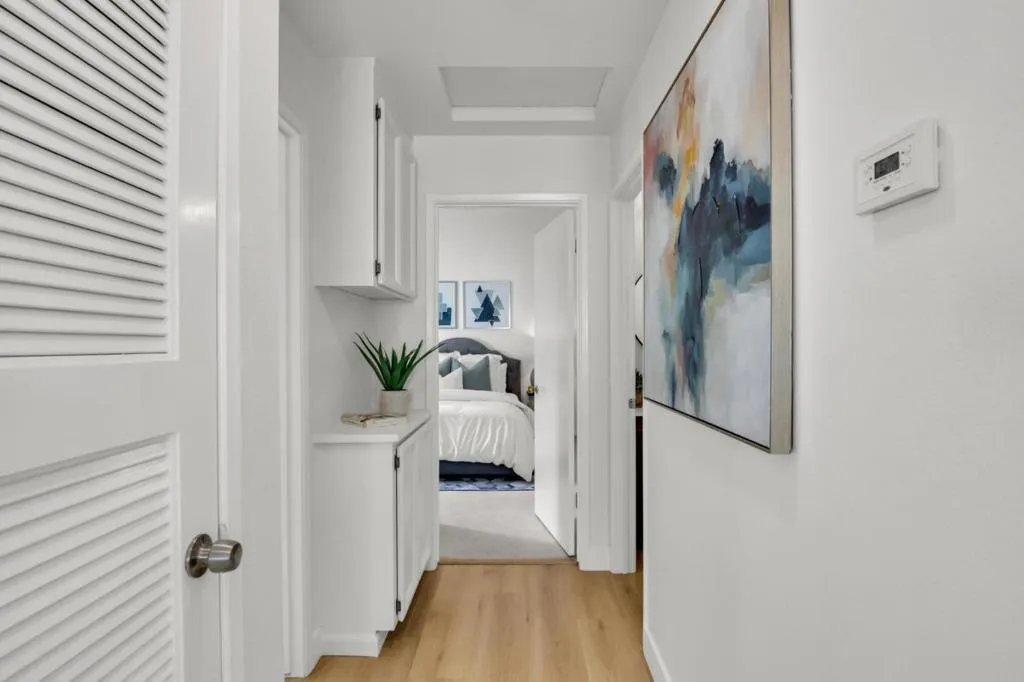 Welcome to this beautifully maintained 2-bedroom, 2-bathroom upper-unit condominium in the desirable Ardenwood community of Fremont. Featuring approximately 918 sq. ft. of comfortable living space, this home offers a bright and airy floor plan with abundant natural light. Enjoy brand-new luxury SPC flooring, fresh interior paint, new bathroom vanities, and modern light fixtures. The vaulted ceiling in the living room adds a spacious touch. The primary suite includes a walk-in closet, and the updated kitchen boasts ample cabinetry. In-unit laundry, attached garage parking, plus an additional assigned open parking space provide ultimate convenience. Relax on the large balcony with your morning coffee. Step outside to the serene Ardenwood grounds with lush greenbelts and community amenities. Ideally located close to shopping, dining, parks, and top-rated Fremont schools, this home is the perfect blend of comfort and convenience. Dont miss this opportunity!