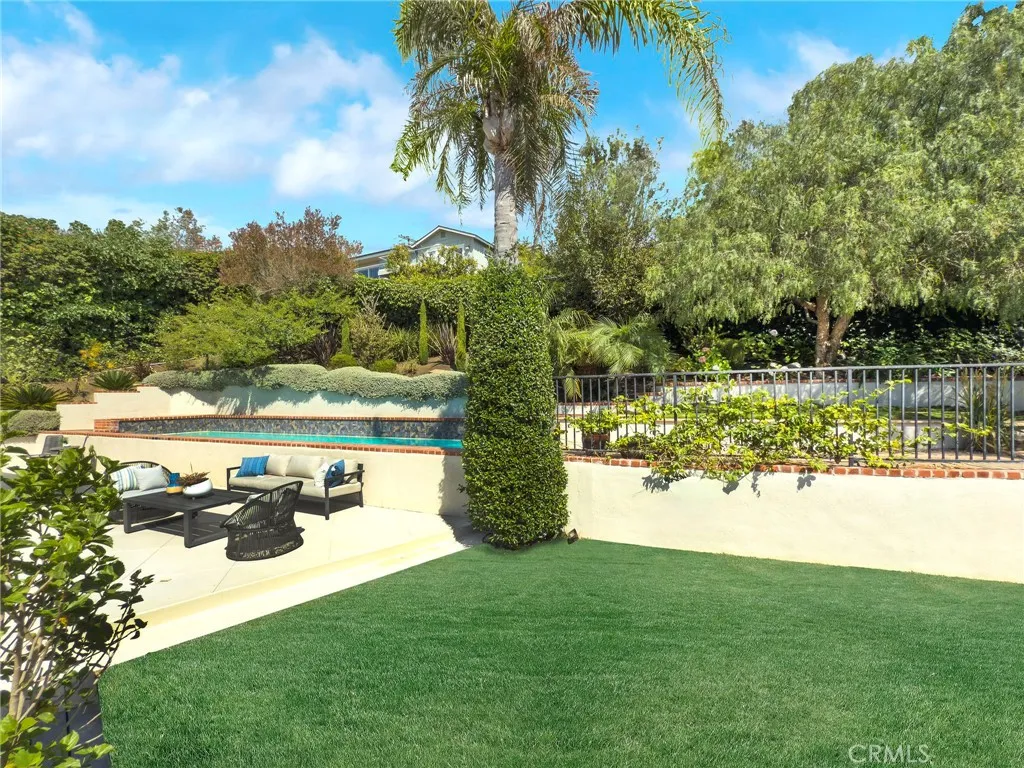Outdoors, resort-style living awaits with a sparkling pool and spa, lush lawn, and multiple terraces designed for sunset dining, entertaining, or quiet reflection. The upper terrace presents potential for an ADU, adding flexibility for a private guest suite or detached office, all set against extraordinary coastal views. Mature landscaping, tree-lined privacy, and a spacious two-car garage complete this timeless mid-century modern sanctuary—an estate that embodies the true essence of Laguna Beach living.
