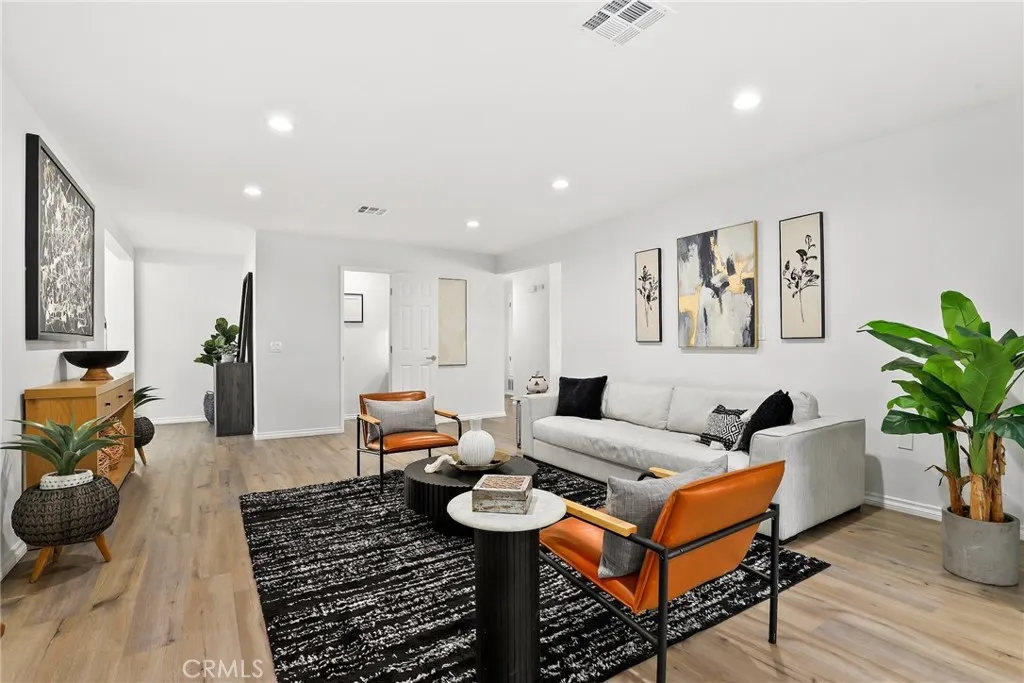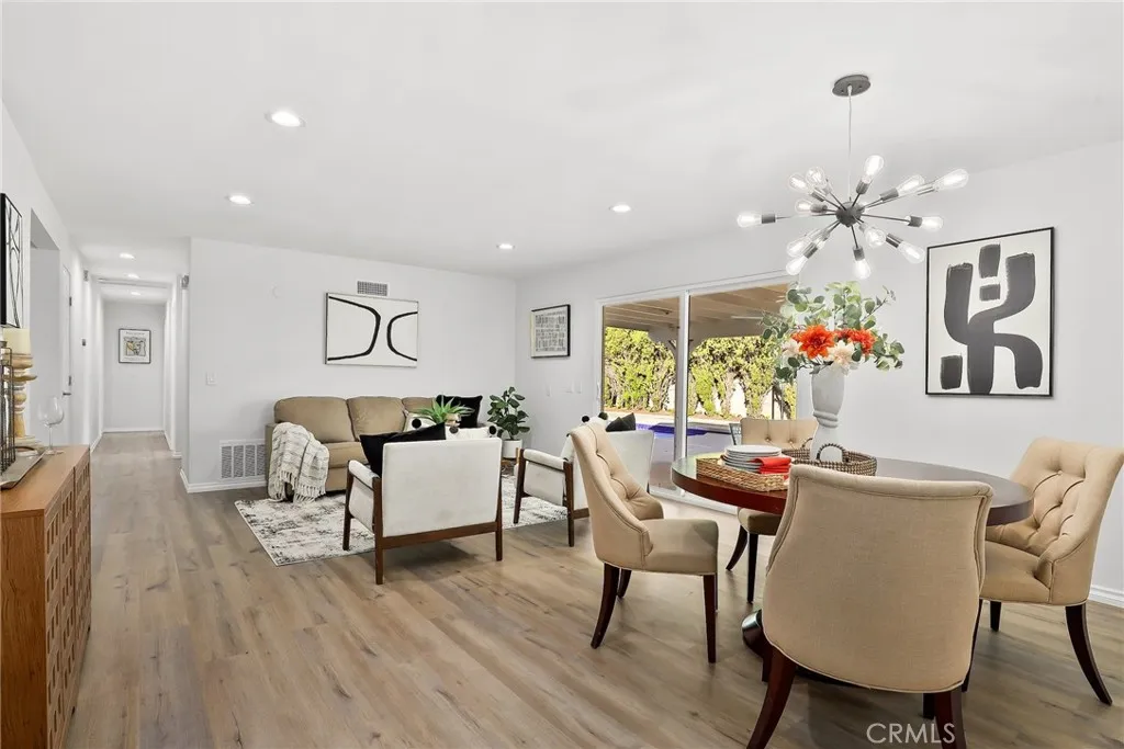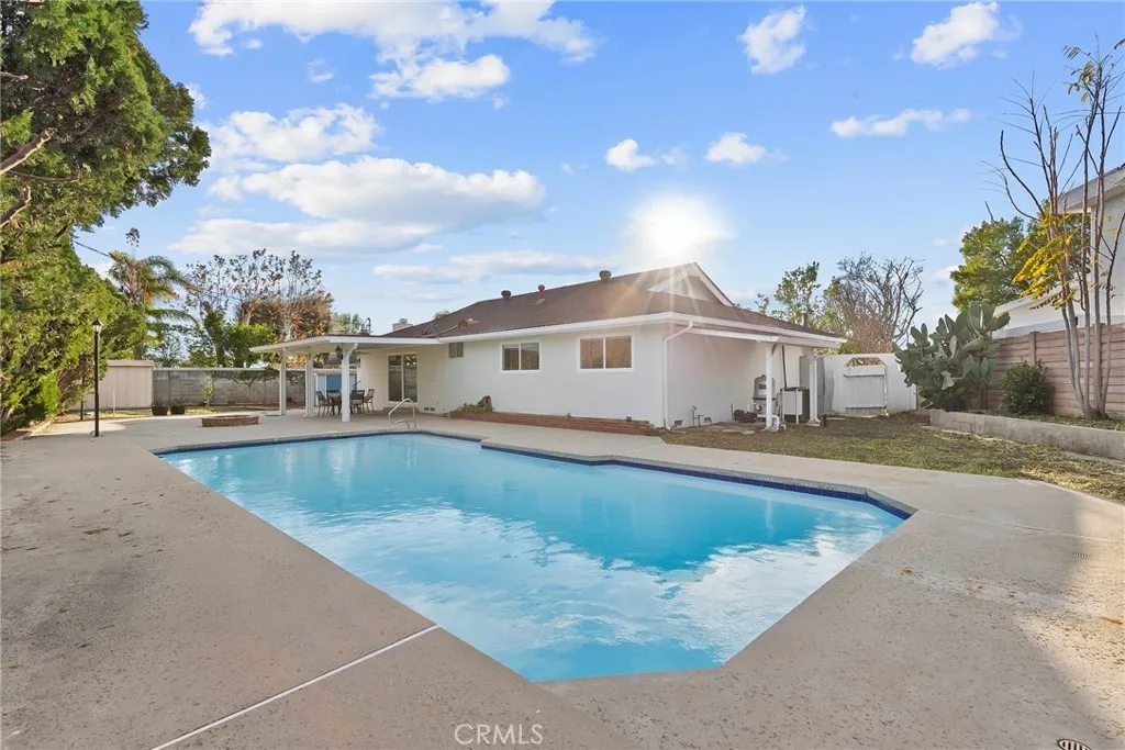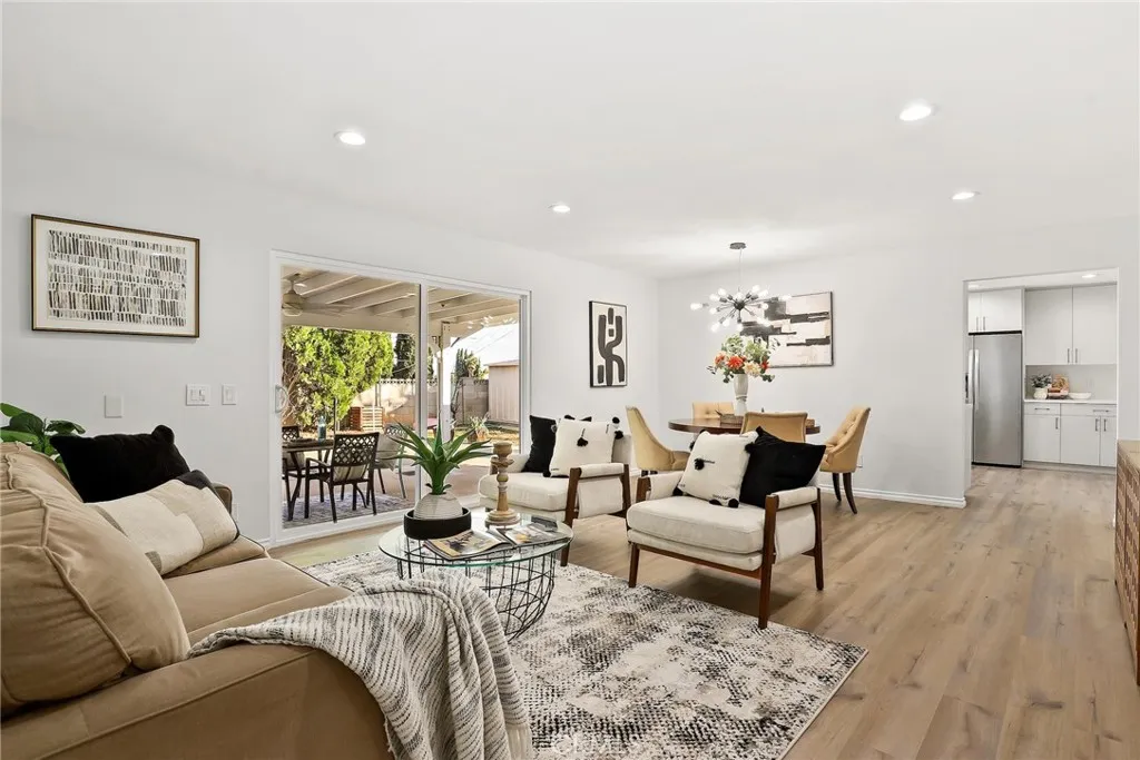 Set behind a quiet cul-de-sac in one of Northridge’s most sought-after neighborhoods, this exquisitely renovated 4-bedroom, 3.5-bathroom residence offers a seamless blend of modern luxury and resort-style living. Every detail has been thoughtfully curated, from brand-new plumbing throughout to newly installed custom window blinds enhancing both privacy and design. Upon entry, light-filled interiors reveal recessed lighting and sophisticated new flooring from the Pacific Acres Beach collection, creating a warm yet contemporary ambiance. The heart of the home is the designer kitchen, featuring sleek Italian cabinetry, Calcutta-inspired countertops, stainless steel appliances, premium fixtures, and elegant hardware—perfectly suited for both culinary excellence and effortless entertaining. The primary suite is a private sanctuary, complete with recessed lighting, a newly constructed walk-in closet, bespoke double vanities, and a spa-inspired bath boasting a deep soaking tub with brushed nickel accents and refined lighting details. Secondary bedrooms are generously sized, offering comfort and versatility. Expansive living spaces open through new sliding doors to a stunning backyard retreat. Designed for elevated outdoor living, the exterior showcases smooth new stucco, fresh sod, desert-inspired landscaping, a large covered patio, custom fire pit, and a newly retiled pool—ideal for hosting or relaxing in complete privacy. The front yard is enhanced with California native plantings and a drought-conscious irrigation system. Ideally located moments from Cal State Northridge, premier shopping, dining, and lifestyle amenities, this exceptional home delivers luxury, comfort, and timeless style in an unparalleled setting.