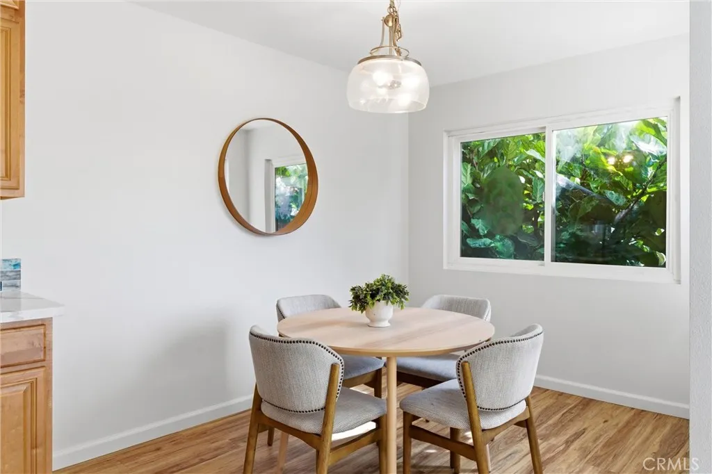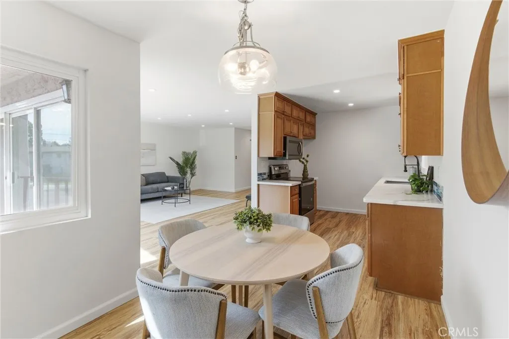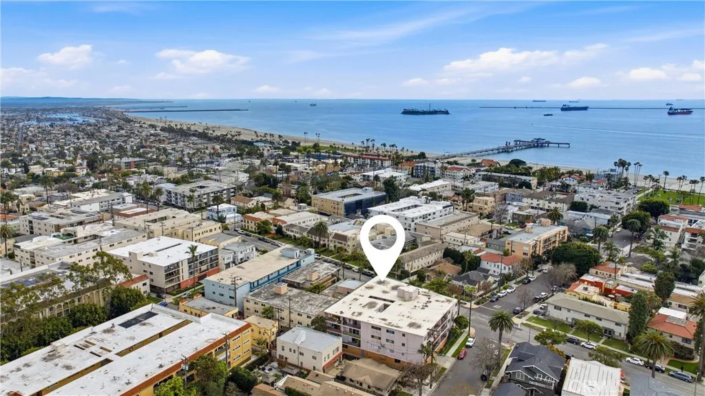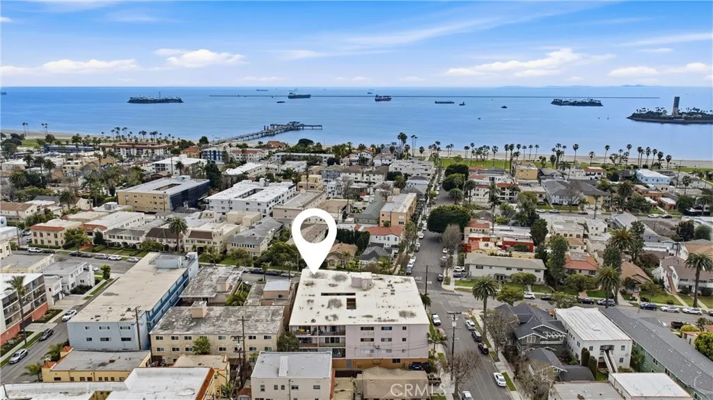 Imagine a life of sunshine, gentle breezes, swaying palm trees, waves cresting, and breaking on the shore. Awake to the knowledge that you are living your best life just two blocks from the Pacific Ocean. Welcome to the historic Belmont Heights enclave, a very walkable neighborhood with a strong community feel, close to Bluff Park and Junipero Beach. Nearby Belmont Shore, with its shops, restaurants and cafes offers a lifestyle of ease and comfort. Now, open the door to 3609 East 2nd Street #207. Cross the threshold. Step inside. That smile is your assurance of the good times to come. The foyer features an expanse of mirrored closet doors. Keep stepping. The view that beckons is the reward of living on the second floor overlooking the city life below. Floor to ceiling walls of glass doors slide open with an invitation to sip morning java on the balcony or appreciate the glittering lights in the nighttime sky. Natural light fills every space and illuminates the gleaming, wood laminate floors to glide your partner to experience the joys of art, music and literature in the spacious living area. Raise a glass and celebrate your good fortune with every tasty meal in the dining nook adjoining the kitchen. Expansive white, marble countertops with custom design, blue backsplash, abundant cabinets, all new (2023)Whirlpool appliances, including a self-cleaning electric range, built-in stainless steel microwave, and a stainless steel, top control, dishwasher are highlights of the kitchen. Every Queen deserves a royal lair. The private quarters offer nocturnal serenity in the primary bedroom with recessed lights, a spacious, mirrored closet with organizers, and an ensuite bathroom vanity with multiple drawers and a walk-in tiled shower. Tranquility awaits in the secondary bedroom. Adjacent is the hall bath with a white, tiled bathtub/shower combination, and a vanity with multiple storage options. Live like a boss. Embrace Long Beach with every Belmont Heights lifestyle enhancement. Life is what you make it and yours just got exceedingly better. Welcome home.
