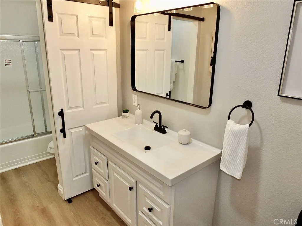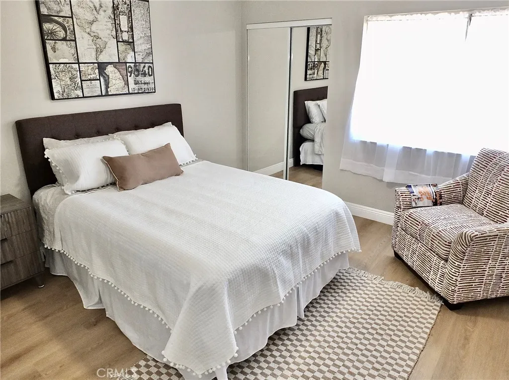 Significant price adjustment! Best value in the building—seller motivated for a quick close. Step into your fully renovated, move-in-ready Anaheim retreat! This 2-bedroom, 2-bath sanctuary features an airy open-concept layout and sleek modern upgrades at every turn. This home is designed for effortless living. Say goodbye to weekend yard work and hello to your new lifestyle—every inch has been reimagined so you can just move in and start making memories. •New Modern Kitchen: Fully remodeled kitchen with all-new sleek quartz counters and brand-new stainless-steel appliances. •Designer Finishes: Upgraded bathrooms, fresh neutral paint and water/scratch-resistant luxury vinyl flooring throughout that handles life (and pets) with ease. •Space to Breathe: 1,074 sq. ft. of flexible living. The primary suite offers room for a dedicated home office or vanity •Zen Views:Relax on your balcony overlooking the lush, landscaped grounds and sparkling pool. •Amenities: Hit the fitness center, shoot pool in the clubhouse, or host a party using the community kitchen •Location: Walking distance to shops and restaurants at Anaheim Plaza, easy freeway access, and a short drive to Disneyland, Knott's Berry Farm, Honda Center, Anaheim Convention Center and so much more! •Easy Buying: VA & FHA approved. •Rare Perks: 2 SECURE garage spaces + 2 storage units. New water heater and newer HVAC for total peace of mind. ***VA AND FHA APPROVED!***The complex faces Pearl St (turn right from Wilshire Ave if coming from Lincoln Ave) -Park your car at the visitor parking available in the front on Pearl St (small driveway right of the lobby). Go through the pedestrian gate to access, not through the lobby.