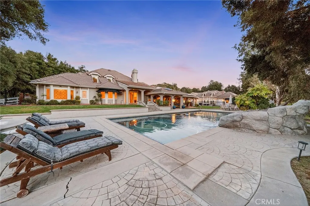 Nestled in the coveted La Cresta Highlands community of Murrieta, this extraordinary 4.9-acre estate backs directly to the Cleveland National Forest and is surrounded by multi-million-dollar properties, offering unmatched privacy, serenity, and panoramic natural beauty! The main residence showcases 5 bedrooms and 4½ baths, highlighted by a stunning grand room with soaring ceilings, exposed wood beams, a natural wood-burning fireplace, and a full-size wet bar—seamlessly opening to a true backyard oasis. Designed for entertaining, the resort-style pool and spa feature a custom slide, creating the ultimate gathering space for family and friends! A chef’s kitchen impresses with granite countertops, custom cabinetry, and high-end Viking stainless steel appliances. The spacious primary suite offers a cozy sitting area, fireplace, and picturesque views overlooking the pool and spa. Additional interior features include an upstairs bonus room, a richly appointed library with built-in custom cabinetry, and a large game room with its own wet bar and vaulted wood-beam ceilings—demonstrating quality craftsmanship throughout! The property also includes a turnkey 2-bedroom, 2½-bath guest house, plus a separate 500 sq. ft. 1-bedroom, 1-bath casita—ideal for multi-generational living or extended guests. Car enthusiasts and hobbyists will appreciate the impressive 1,500 sq. ft. detached 6-car garage/workshop! A double-gated circular driveway leads to park-like grounds studded with mature oak trees and a natural creek that runs along the back of the property. Equestrian-ready with corrals, shelters, fenced and cross-fenced areas, plus a tack room with laundry hookups. Equipped with a private well, 5,000-gallon water tank, and 48 paid solar panels for energy efficiency! Peaceful country living just 15 minutes to the I-15 freeway, shopping, dining, and within the award-winning Murrieta school district. An exceptional entertainer’s paradise—don’t miss this rare opportunity!